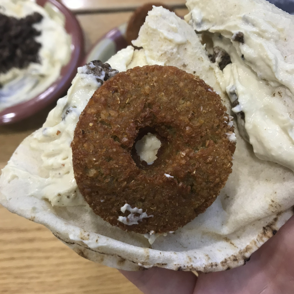 반을 가르면 주머니가 생기는데 이 속에 팔라펠이나 코프타(Kofta)를 채워 먹는다. 에이시에 타히니 소스 발라 고기 한 점 올려 싸 먹으면 상추에 된장 한 점 묻혀 삼겹살 쌈 싸 먹는 맛 저리 가라이다!