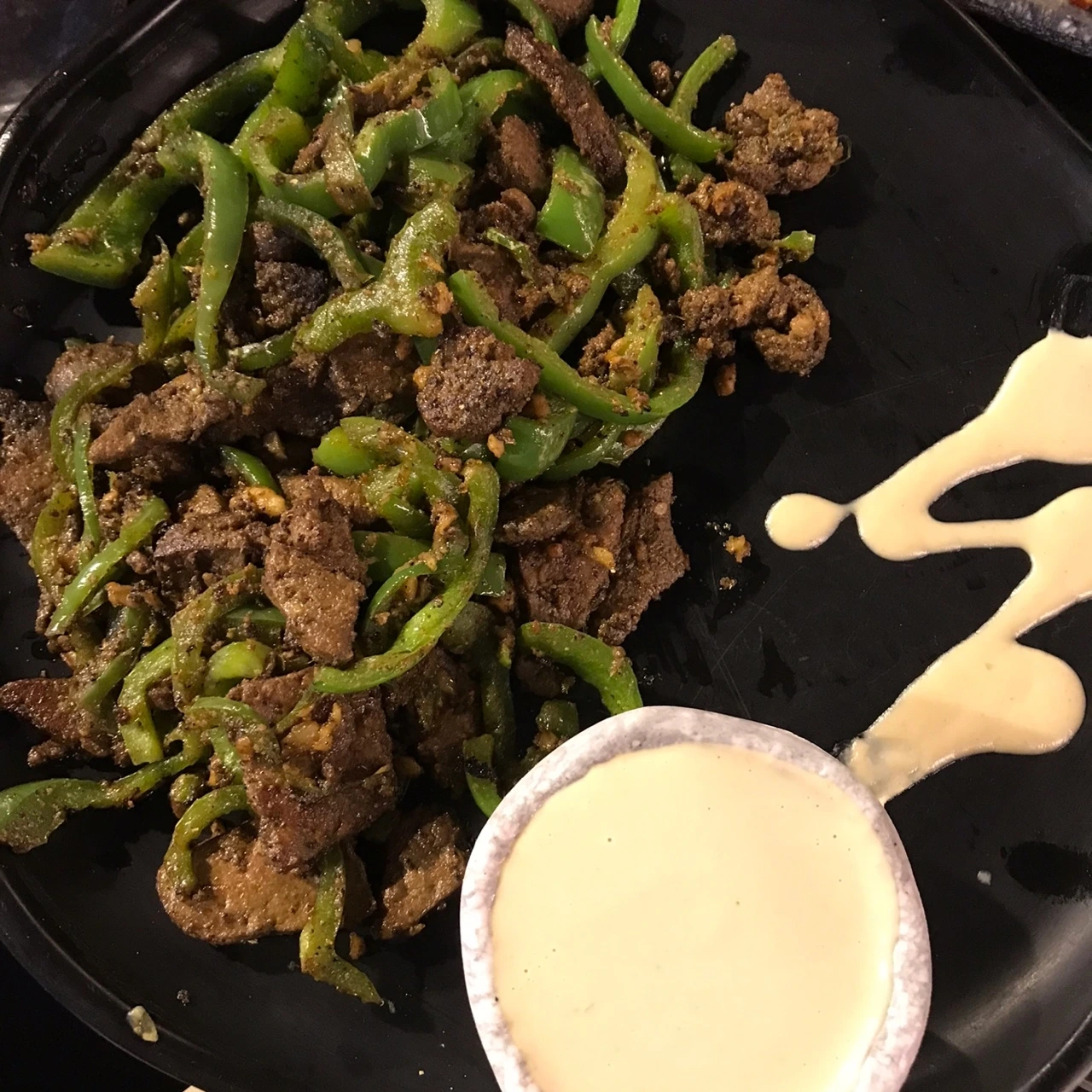 말레이시아 유학 시절 내 최애 중동 음식이었던 소 간 샌드위치(Kebda Eskandarani). 이집트에 와서야 정확한 이름을 알게 되었다. 현지 인기 만점 간식으로 길거리 수레에서 쉽게 볼 수 있다. 식당에 가서 각 잡고 시키면 플래터로도 먹을 수 있다는 점. 씹을수록 고소하고 매콤하고 도대체 어떻게 볶는 걸까, 너무 맛있다!