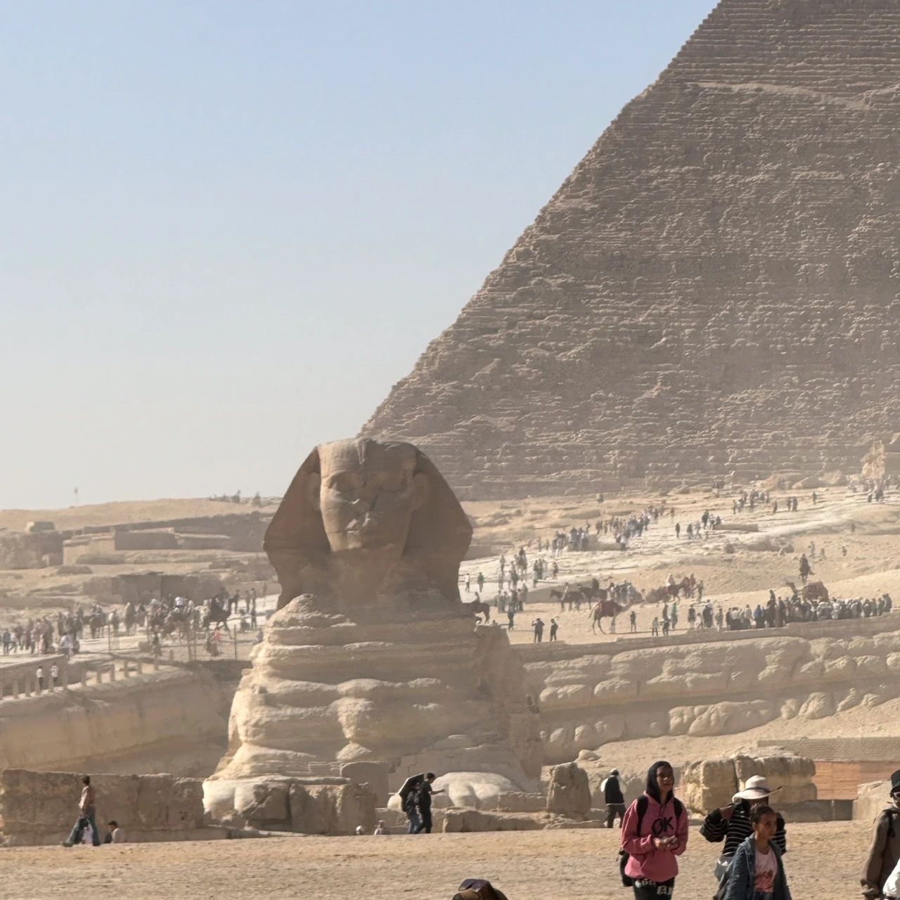 기자에 가면 도시와 근접해 있는 피라미드가 멀리서도 보인다. 하지만 피라미드 바로 앞에 가보면 쌓아 올린 돌덩이 하나가 사람 키 보다 크다는 사실! 추가로 이슬람의 공휴일은 일요일이 아닌 금요일라고 한다. 그래서 금요일인 공휴일에 이집트 학생들이 피라미드로 많이 견학을 가는데 가는 날이 장날이라고 하필 그날은 금요일이었다. 호객행위에 치이고 학생들한테 치이고 피라미드 구경하기 참 힘들다! 다들 금요일은 피해 가십시오.