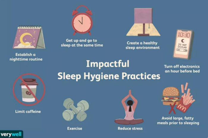 수면 위생이란 건강한 수면을 위한 일련의 생활 습관과 규칙들을 일컫는다. 수면 위생을 실천하면 잠에 들거나 숙면을 취하는 것에 도움이 된다. 특히나 오랫동안 지속되는 불면증이 있을 때, 수면 위생은 가장 효과적인 장기 치료 방법이기도 하다.
