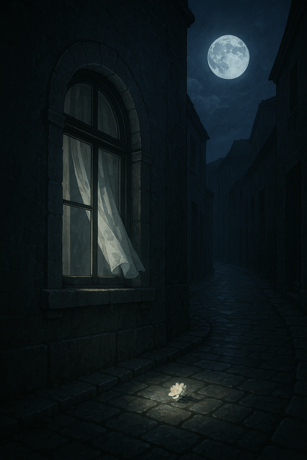 달빛 아래, 그 자리에 남겨진 국화꽃 한 송이.