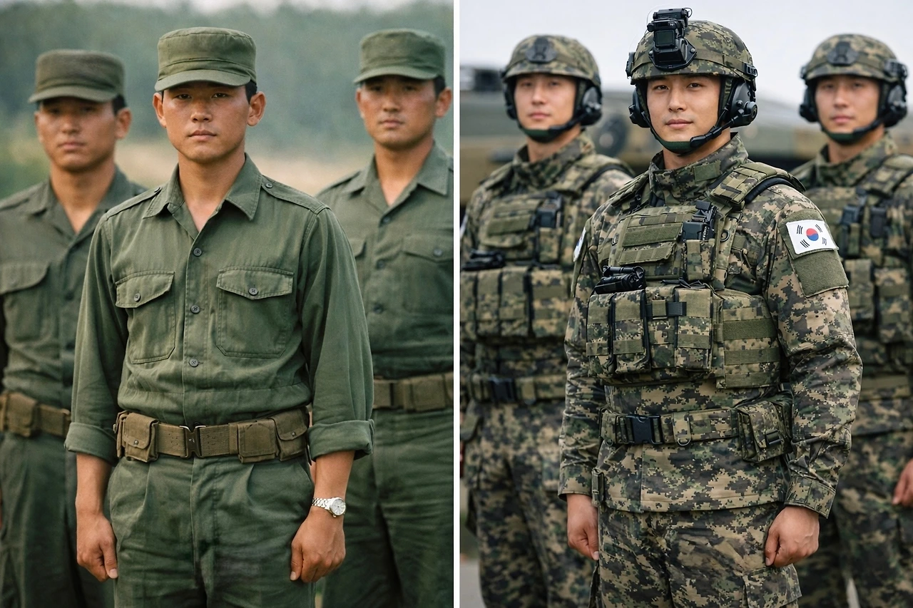 “옛날에는 천도 부족했고, 기술도 없고 질도 안 좋았어요. 비가 오면 군복에서 물이 빠져 허옇게 변했죠. 그래도 계속 입었어요. 우리 때는 복무 기간도 33개월이었고, 월급은 4~5천 원 받았어요. 지금은 많이 좋아진 거죠.”