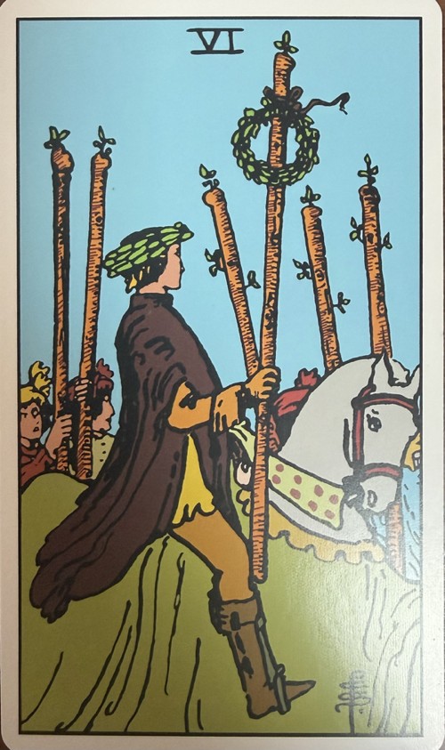 오늘 내 심리에 맞는 카드는 여섯 개의 새순봉(SIX OF WANDS) 카드이다.