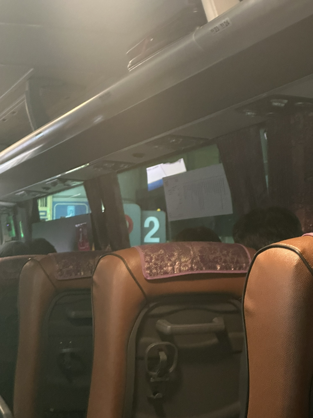 아뿔싸. 버스 정류장에 도착하니 한명이었던 대기인원이 이삼십명 정도로 늘어나 있었다. 도착해 출발을 기다리는 버스는 이미 사람이 조금씩 차고 있었다. 두근두근. 나도 타야하는데. 30분 더 못 기다리는데. 불고기는 다 못 먹었는데 너무 아깝잖아. 별의 별 생각이 다 들었다. 다행히도 아슬아슬하게 버스에 탈 수 있었다. 인천국제공항에서 타는 공항리무진과는 느낌이 좀 달랐다.