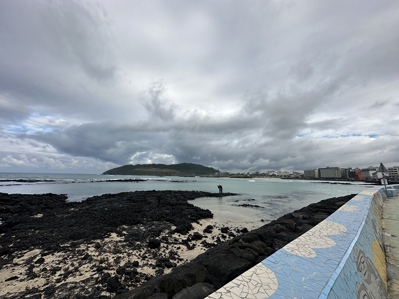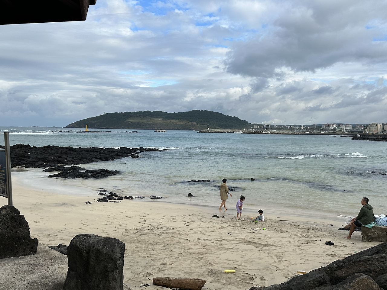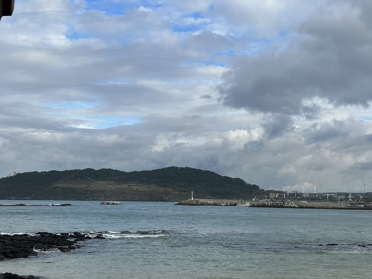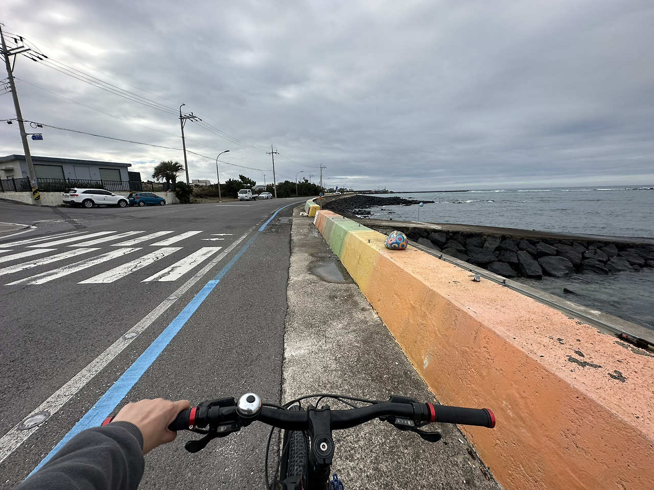 바다 쪽으로 나가 갈림길에서 오른쪽으로 달렸다. 함덕해변으로 가보고 싶어서였다. 풍경이 종달리와는 또 달르게 아름다웠다. 십분 정도 달리니 함덕해변이 나왔는데, 여기는 길도 좁고, 사람도 많아서 또 겁이 났다. 잔뜩 겁에 질린 채 천천히 달리는데, 한 아저씨가 앞에 눈에 보였다. 왜인지 불안했다. 부딪히지 않게 피하려고 애쓰며 달리는 나에게 아저씨가 말을 걸으셨다.