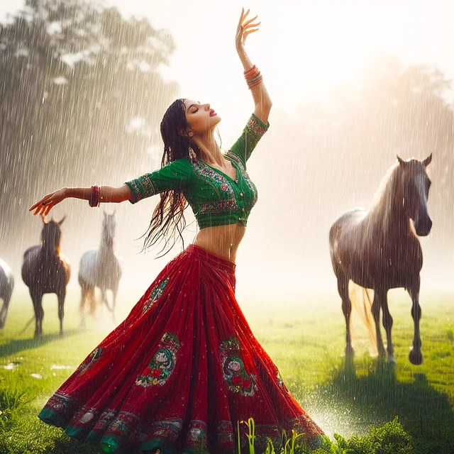 비에 젖어 더 짙어진 갈기를 털거나 푸푸 거리며