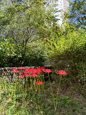 사실 '점령'이라는 단어를 사용할 만큼 엄청난 양의 무릇꽃이 피지는 않는다. 하지만 아직은 무성한 초록 풀들과 나뭇잎 사이 강렬한 다홍색의 가녀린 꽃들은 많지 않아도 확실하게 존재감을 드러내곤 한다.