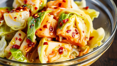 양배추 김치는 먼저 양배추를 네모나게 대충 썰어 굵은소금에 절인다. 양배추가 절여지는 동안 빨간 생고추와 마늘을 적당히 갈아 양념을 만들고, 나중에 파만 추가해 어느 정도 절여진 양배추와 섞는다. 고춧가루 대신 생고추를 갈아 굵은 고추의 입자가 씹히고, 양배추 특유의 아삭함과 달콤함이 있어 별다른 당이 들어가지 않아도 충분히 달고 시원하다. 이렇게 간단한 양념으로 만들어진 양배추 김치이지만 그 맛만큼은 전혀 간단하지 않은 깊은 맛이다.