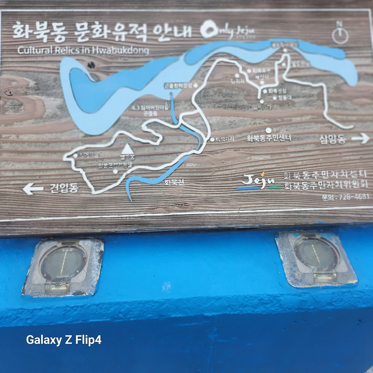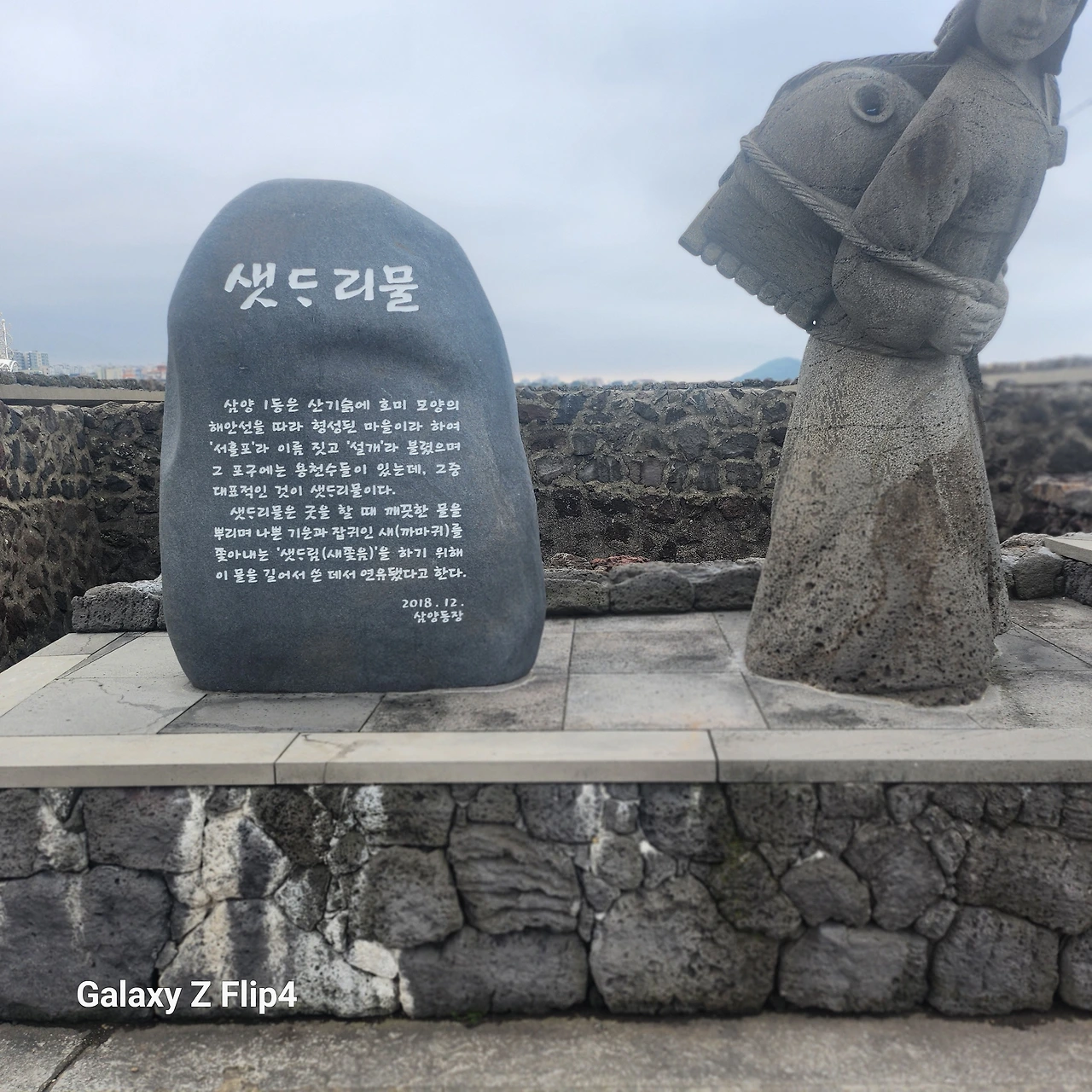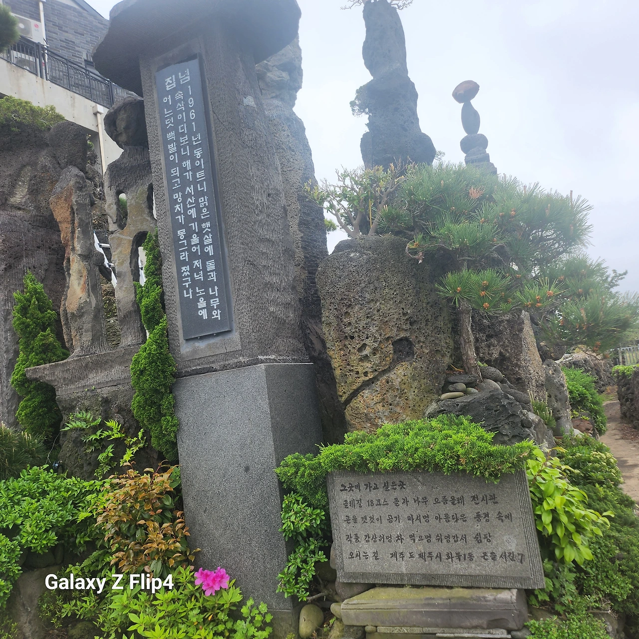 바람도 나그네도 쉬어가는 곳이 나타났다. 분명 개인의 정원인데 돌과 나무들로 빚어낸 걸작 솜씨가 너무나 훌륭하여 입이 다물어지지 않았다. 그리고 오고 가는 길손들에게 잠시라도 쉬어가며 눈호강하라고 개방해 준 주인장의 대인배다운 배려에 우리는 감동의 소리를 질렀다. 여행은 많은 것을 본받게도 해준다. 다시 힘을 얻은 우리는 조선시대 육지와 연결하던 중요한 관문 역할을 하던 화북포구에 도착했다. 바람이 차가워 날씨가쌀쌀했다. 바닷가 근처에 용왕을 모신 해신사가 있었다. 무속신앙이 강한 제주도민들을 관체제하에 두기 위하여 순조 때 만들었다고 한다. 이윽고 검은 모래로 이루어진 삼양해수욕장이 나타났다. 뜨거운 여름철에 검은 모래찜질을 하면 피부병과 관절에 효과가 있다고 한다. 맨발로 걷는 사람들로 북적였다. 느려진 걸음으로 삼화포구에 도착했다. 수영장 하면 좋겠다는 생각이 들었다. 소의 꼬리를 닮았다는