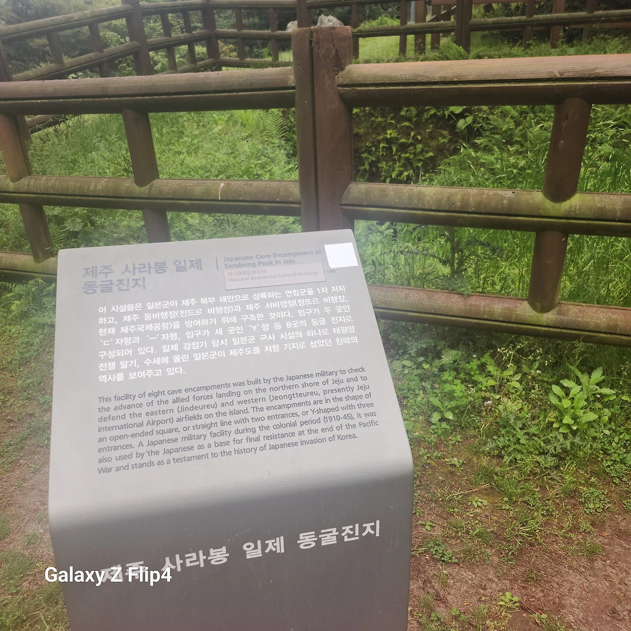사라봉(오름)이 나타났다. 중간중간에 일본군들이 파놓은 컴컴한 보기 싫은 진지동굴이 보여서 짜증이 났다. 다시 내려오니 영등신에게 풍작과 풍어를 기원하는 굿판을 벌이던 제주칠머리당이 나타났다.