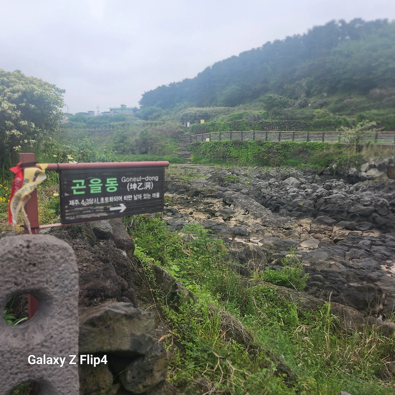 다시 또 별도봉(오름)이 나타났다. 왼쪽으로 보이는 바다의 쪽빛과 오른쪽 푸른 초록이 어울리는 산책로가 아름다웠다. 왼쪽바다에서는 여러 기업의 물류단지에서 이루어지는 뱃고동과 함께 움직이는 각종 기계음이 우렁차게 울러 퍼지고 있었다. 별도봉 구릉지에는 애기업은 바윗돌이 있었다. 외세에 항거하던 젊은 어부 아내의 한이 서려있다고 한다. 이런 내용을 알고 나면 발걸음이 무거워졌다. 다시 내려오니 4.3 당시 온마을이 불에 타 마을전체가 없어지고 터만 남은 곤을동이 나타났다. 국방경비대가 이틀에 걸쳐 주민들 모두 학살하였다고 한다. 남편과 나는 입을 꾹 다문채로 걸었다. 제주의 흑역사를 겪어보지 않은 우리가 무슨 말을 하겠는가? 힘든 발걸음을 걷고 있는데