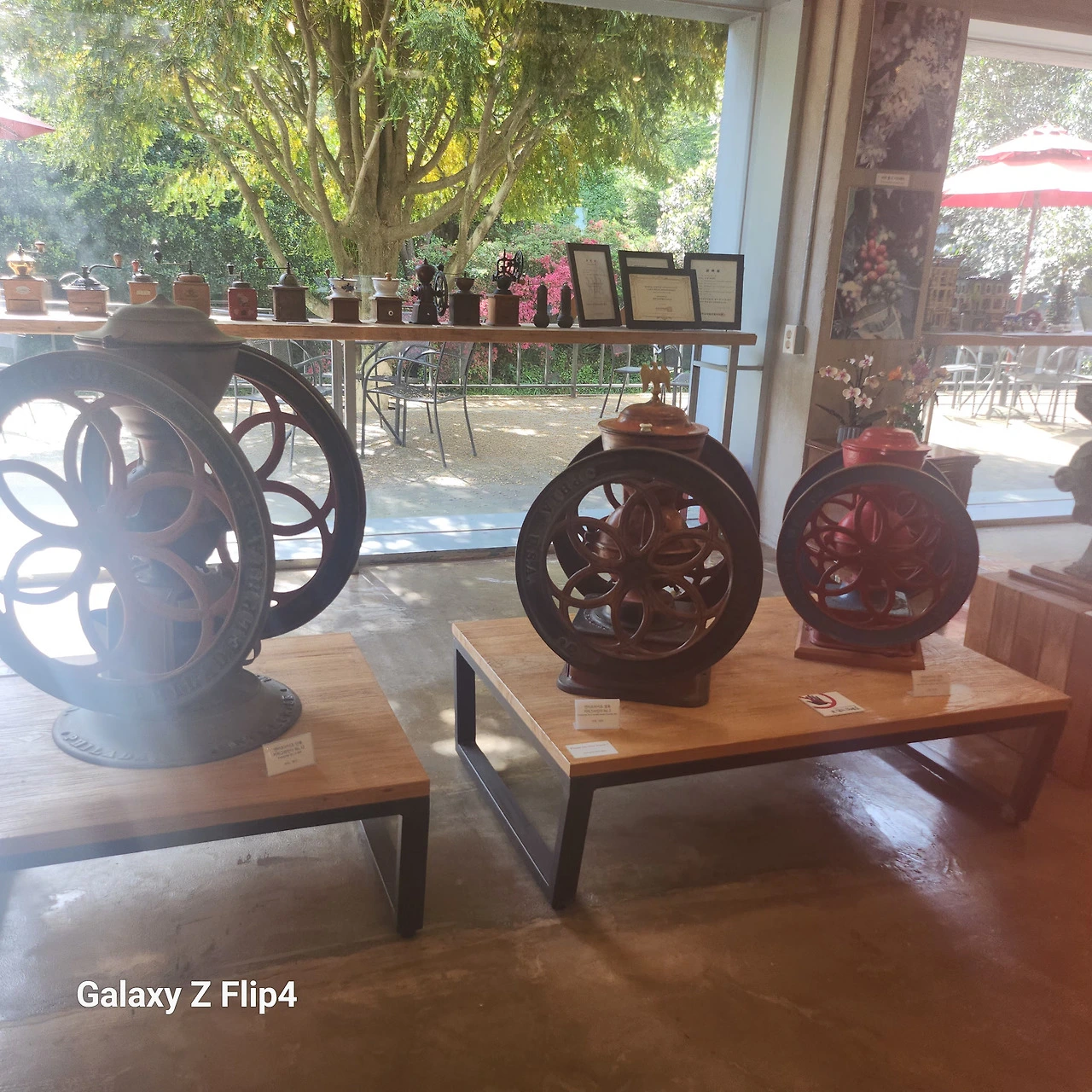 가는 도중 [바움]이라는 커피박물관이 나타났다. 아이러니하게도 커피와 숭늉을 하루 한잔씩해야 하는 남편인지라 핸들을 돌렸다. 큰 도로에서 오솔길로 바뀌어 깊고 조용한 숲 속에 자리 잡고 있었다. 3층 건물로 이루어진 카페 겸 커피기구들을 전시해 놓았다.퇴직하면 카페를 운영할 생각에 대학부설 평생교육원에서 야간반 등록으로 바리스타 자격증을 취득한 나는, 로스팅 기구부터 간단한 휴대용 커피잔까지 관심있게 살펴보았다. 이제 그 자격증은 그야말로 장롱자격증이다. 아주 편한 캡슐커피를 주문하여 척척 내려 마시는 우리 집이기 때문이다. 그래도 있어 보이게 해외직구를 한다. 마음에 드는 잔이 있어 사려고 하니 남편이 말린다. 이제 사지 말고 비우는 노후생활철학을 실천 중이다. 사실 커피잔이 문제가 아니라 맛을 느끼게 해주는 요소들이 중요한 것임을 알았기 때문이다. 은은하게 피어올라 내 코를 자극하는 여유를 느낄 수 있는 시간과 내 마음을 마구 퍼주어도 아깝지 않은 앞에 앉은 누군가의 그 사람, 그리고 가장 중요한 것은 지금 이 순간 내 마음의 평정상태이더라는 것이다. 오랜만에 야외에 마련된 차탁에서 숲의 향기와 커피의 향을 누릴까 싶었는데 옆에서 미화원이 빗자루로 소리 내며 나뭇잎을 퍽퍽 쓰는 것이 아닌가? 세상 살다 살다 손님옆에서 그렇게 먼지 내며 청소하는 업소는 처음 겪었다. 그 와중에도 우리는 청소하는 분이 우리 또래 나이 든 분이라고 이해하자고 했다. 우리는 씁쓰레한 마음이 들어서 일어섰다.