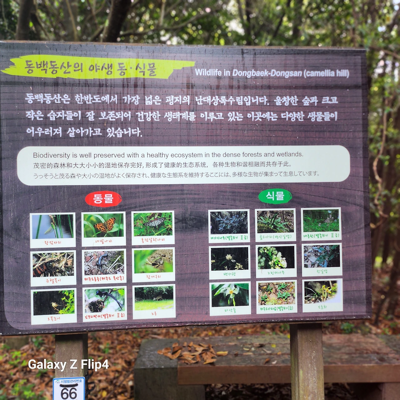 4월 26일 금요일 제주한달살이 26일 차. 비가 오다가 멈추다가 옷 버릴 만큼 내렸지만 우리는 숙소를 나섰다. 목표지는 조천읍 건흘리에 위치한 [동백동산]과 조천읍 비자림로에 위치한 [산굼부리]다.