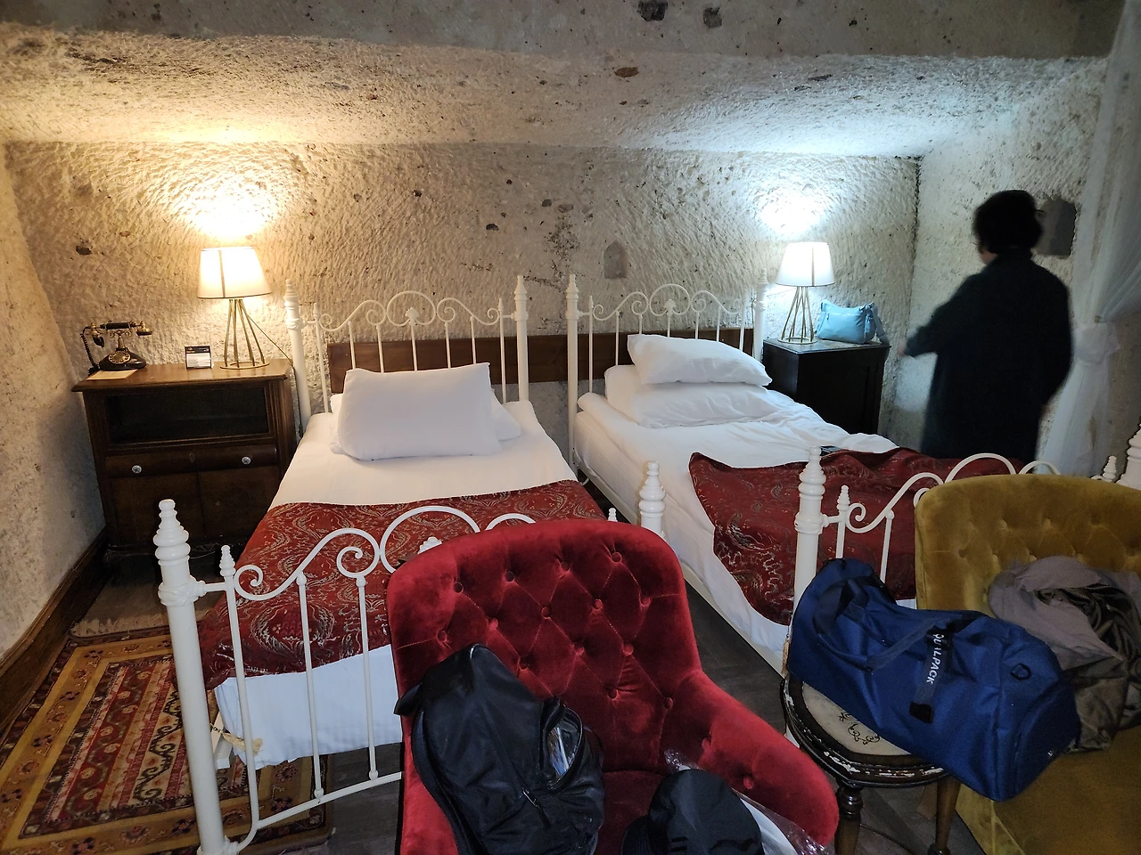 어느새 우리는 넓디넓은 야외공원을 지나 숙소인 동굴 호텔로 향했다. 아주 궁금하였던 동굴호텔이었는데 내가 생각했던 그야말로 토굴 속의 호텔은 아니었고 동굴 입구에 지어진 호텔이어서 조금은 습하고 서늘했다. 그래도 특별한 체험이라고 생각하니 재미있었다. 끼니마다 나오는 케밥은 벌써 더 이상 먹을 수가 없어서 남겼으나 의외로 남편은 잘 먹는 것 같았다. 내일은 드디어 카타도키아의 하늘을 날아오르는 열기구를 타기로 되어서 새벽 일찍 일어나야 한다. 그래서 캐리어도 미리 챙겨두고 우리는 잠자리에 들었다.