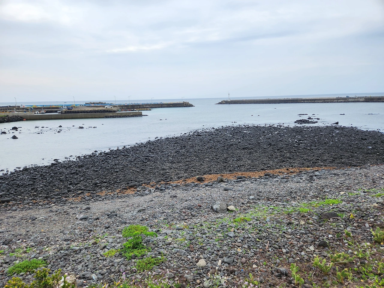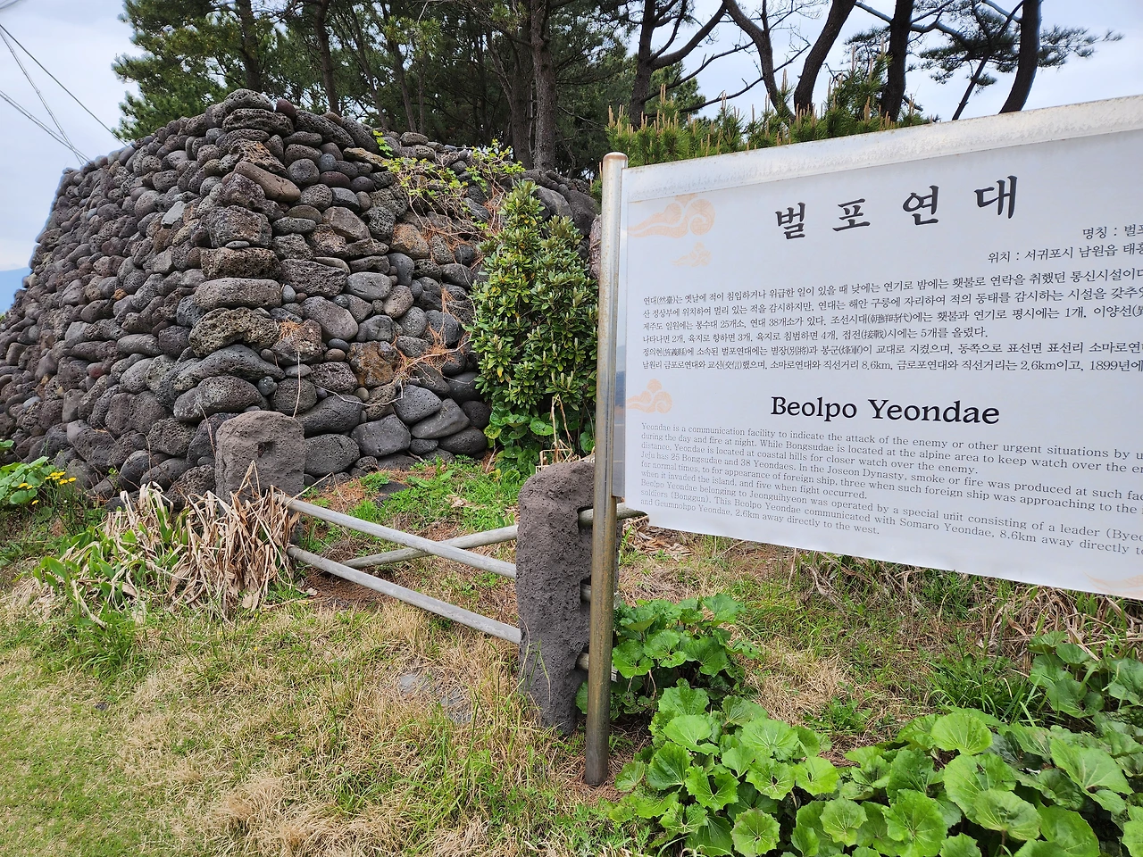 옥돔마을이라는 태흥2리 포구가 나타났다. 쉼터에 들러 준비해 간 김밥과 사과를 먹고 다시 일어섰다. 벌포연대라는 모습과 설명이 적혀 있었다. 적이 침입하거나 위급 시에 낮에는 연기로 밤에는 횃불로 연락을 취했던 통신수단이라고 하였다. 멀리 남원읍이 보이는 카페에 들러서 아픈 다리를 쉬어주기로 하였다. 커피와 망고주스를 한잔씩 하고 일어서니 다리가 휘청거렸다. "아이고야, 내 다리가 아닌 것 같다." 하니 옆의 사람들이 웃었다. 멀리 올레 4코스 종착지인 남원 포구에 도착하니 안내소 근무자가 나와서 아주 반갑게 환영을 해주었다. 먼 길 걷느라고 고생했다며 그리고 남편과 함께 서라며 사진을 아주 근사하게 찍어주었다.