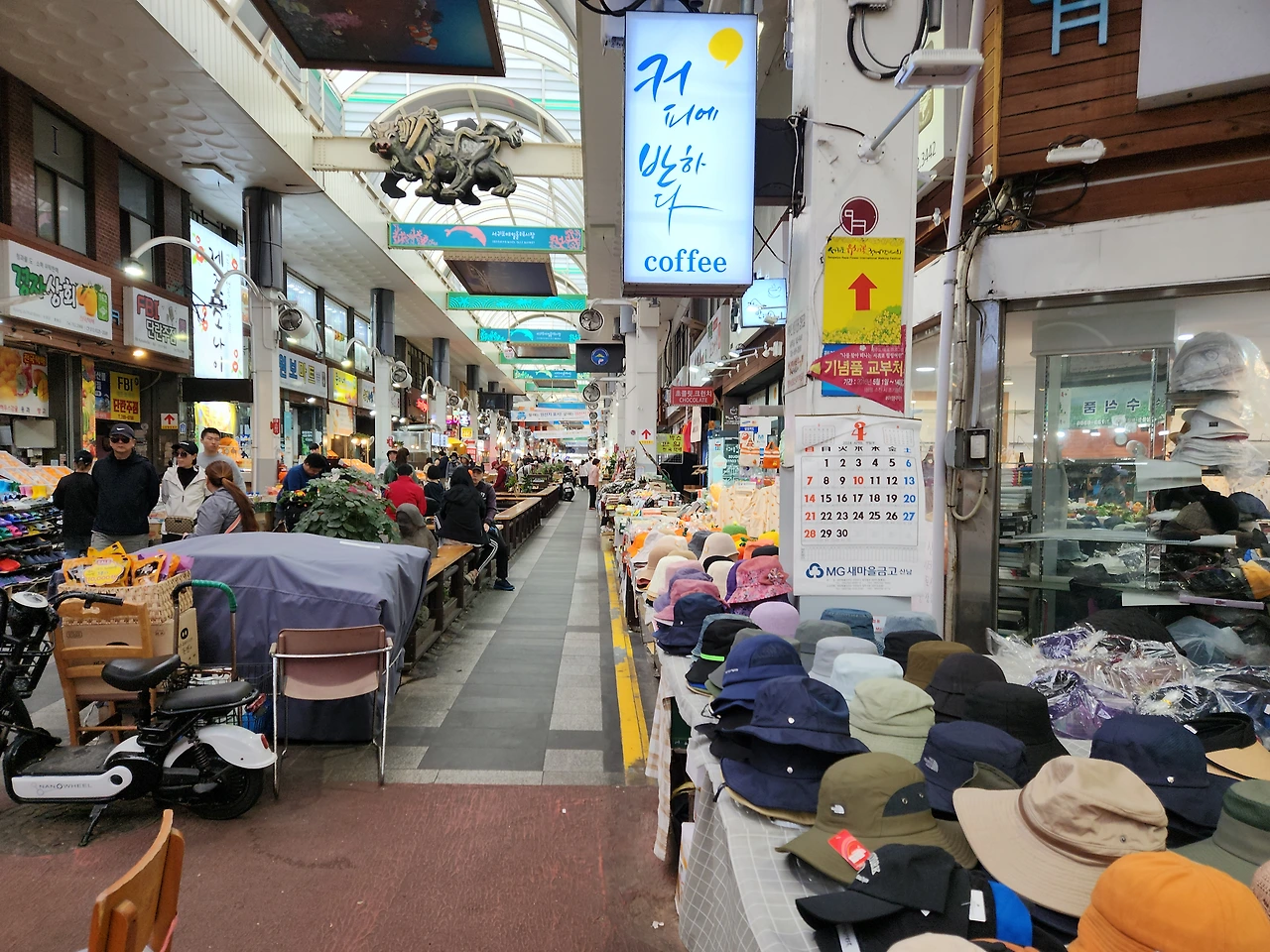제주올레시장으로 갔다. 밀감은 제철을 지나 보이지 않고 천혜향이 많이 나와 있었으나 비싸서 구경만 하고 남편 햇빛가리개 마스크 하나를 샀다. 서귀포시에서 가장 번화가 같았다. 걸어서 여기저기 구경하다가 택시를 타고 우리 차가 있는 쪽으로 되돌아와서 숙소로 오니 4시 30분이었다. 오늘은 정방폭포와 이중섭을 만난 날이어서 보다 뜻깊은 하루였다. 내일 7코스는 또 어떨지?
