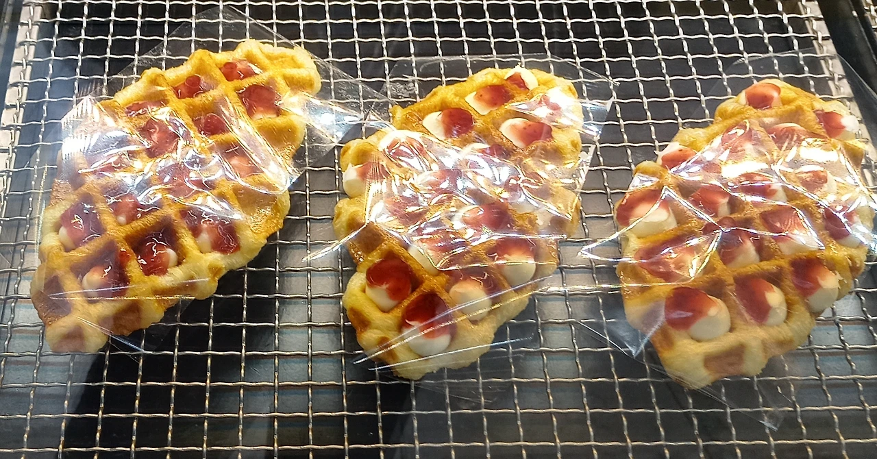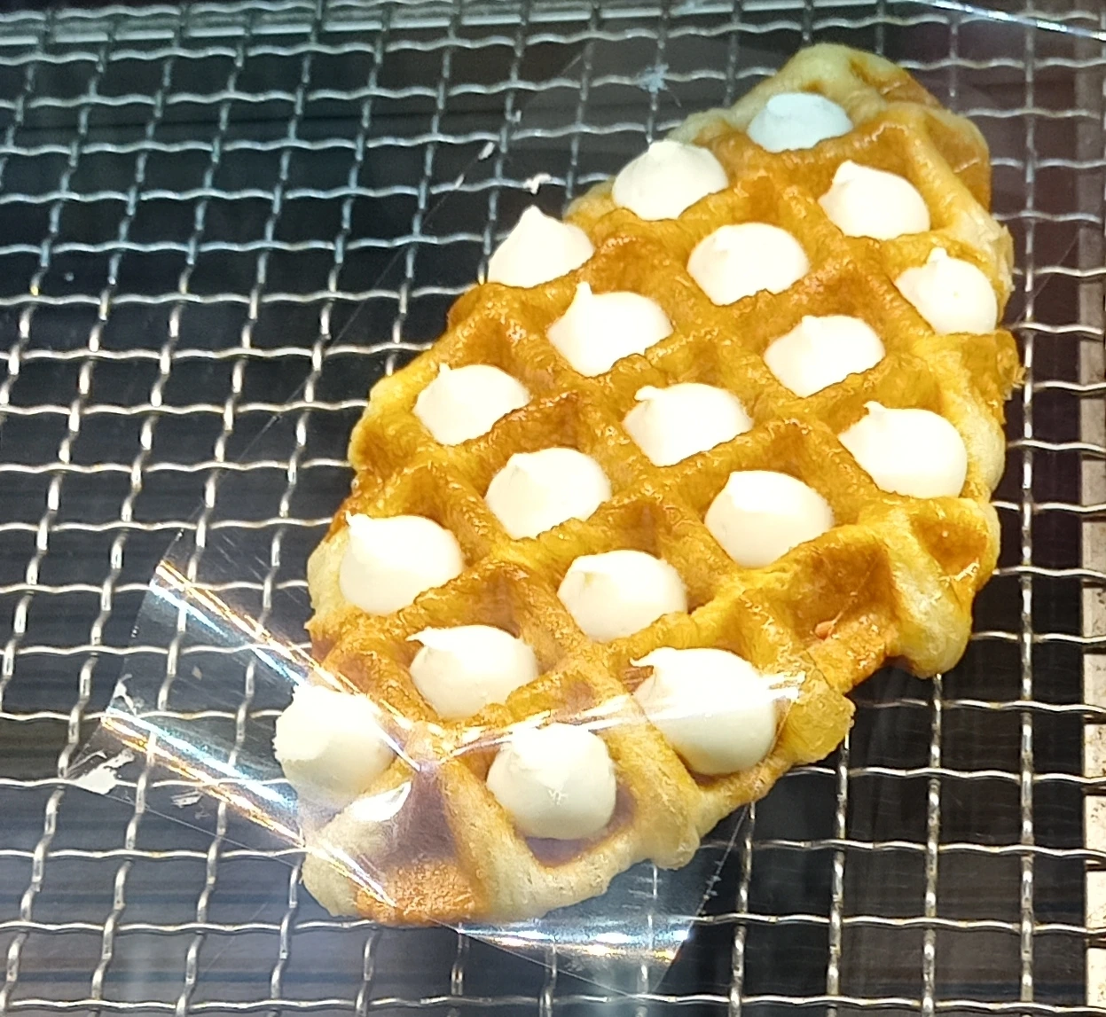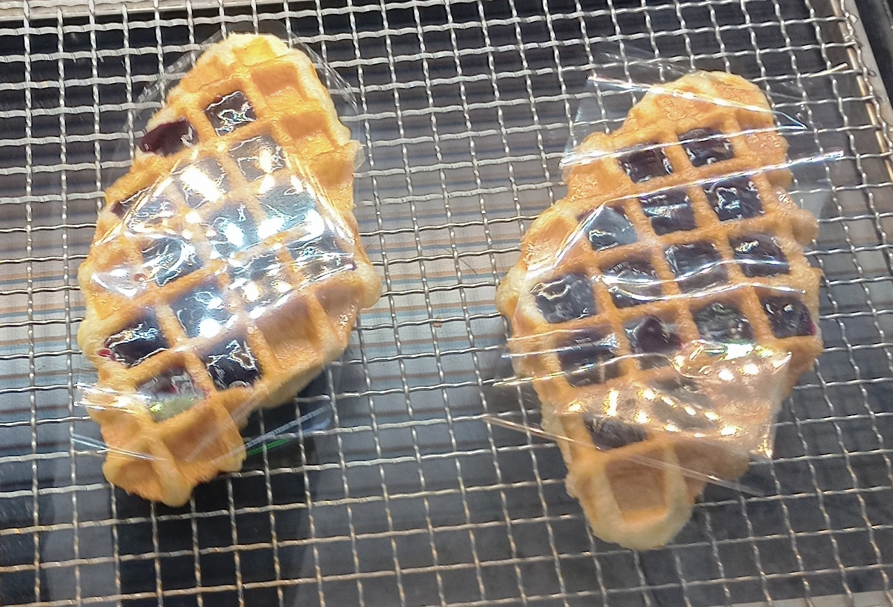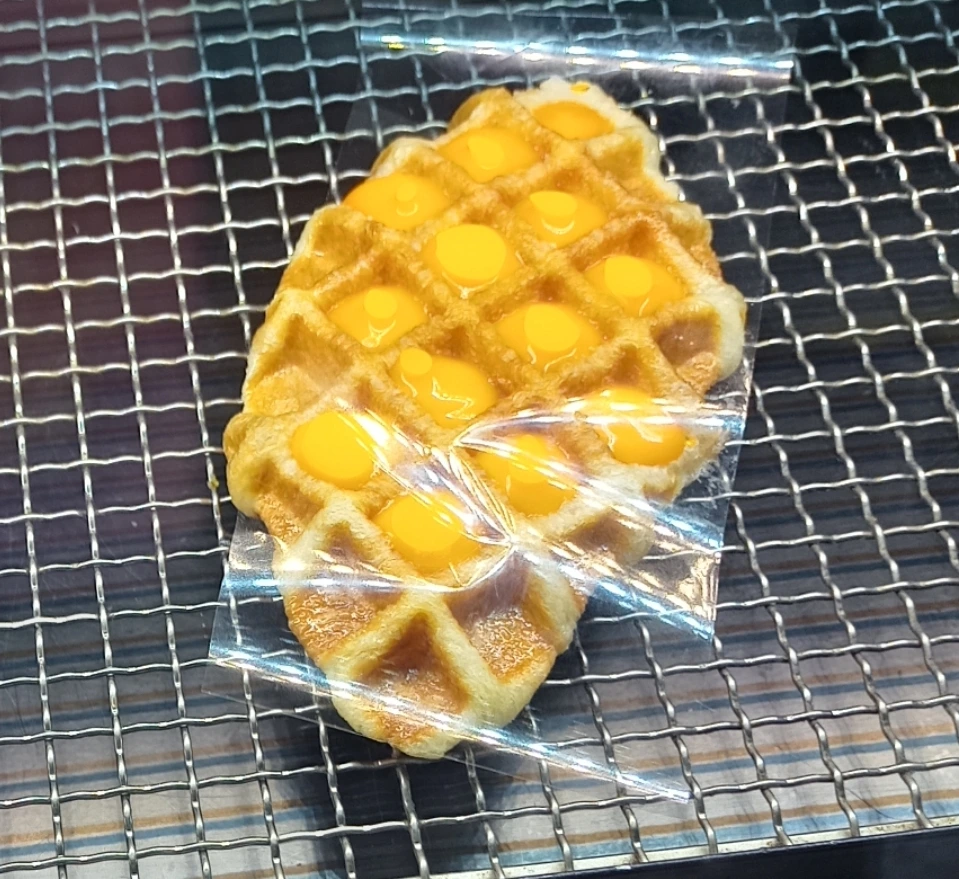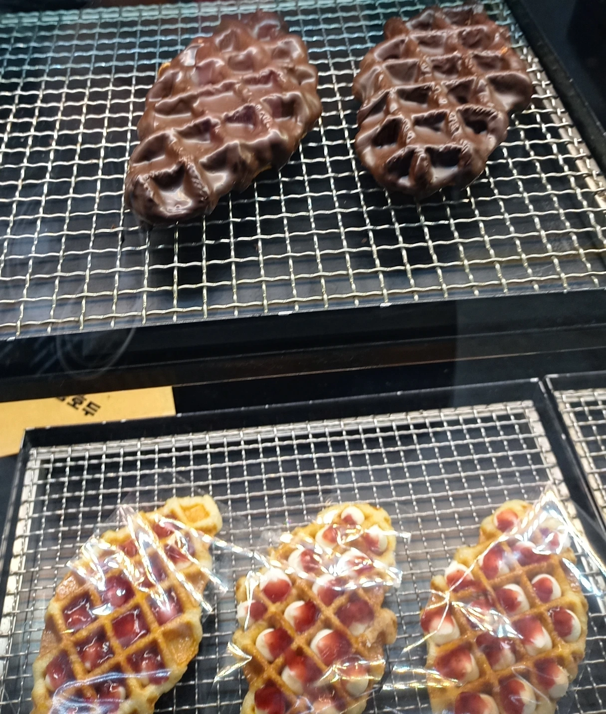 처음엔 팥이 든 호두과자를 먹어봤다. 너무 맛있다. 팥앙금이 맛있으니 슈크림도 먹어보자. 역시 맛있다. 큼지막한 호두가 씹히는 식감도 고급지고, 겉은 바삭하고 속은 고소하니 너무 맛있었다. 호두과자가 맛있으니 옆에서 굽고 있는 크로플도 맛있겠지? 세상에!! 더 맛있다. ㅎㅎ
