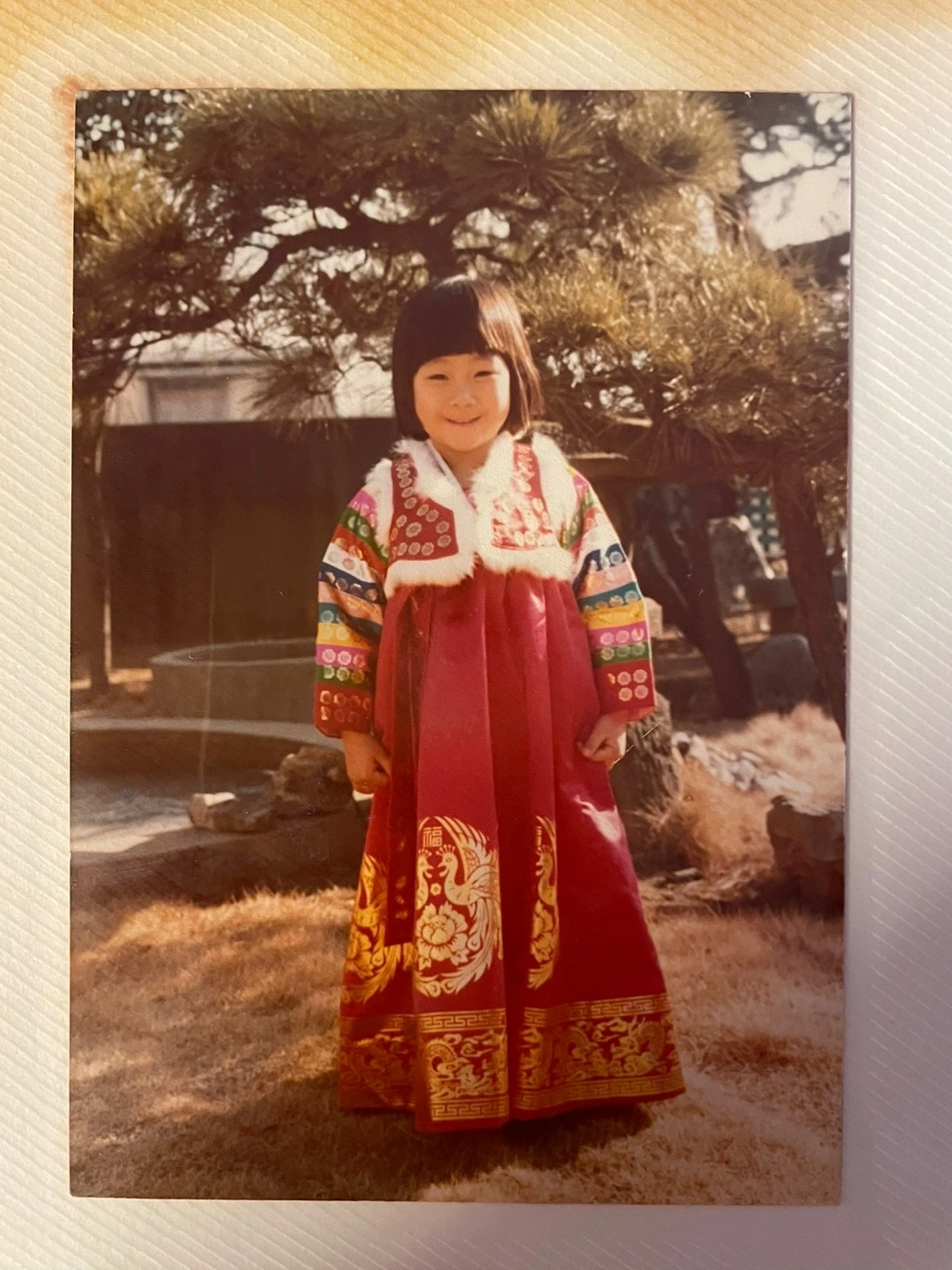 세 번째 컷은 갓 5살이 된 겨울, 민족의 명절 설날 마당 연못 앞에서 찍은 사진이다. 나는 한복을 곱게 입고 바가지 머리에 고무신까지 신고 주먹을 쥔 채 차렷 자세로 짓궂은 미소를 머금고 있다.