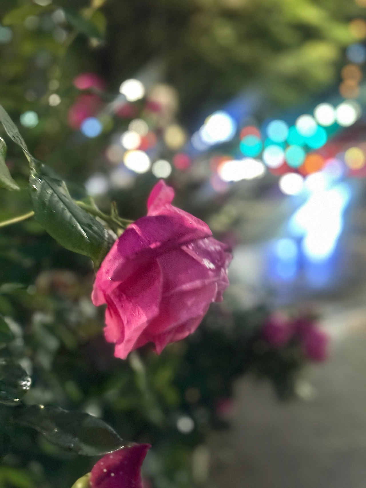 도심의 불빛 사이로 장미꽃들이 보였다