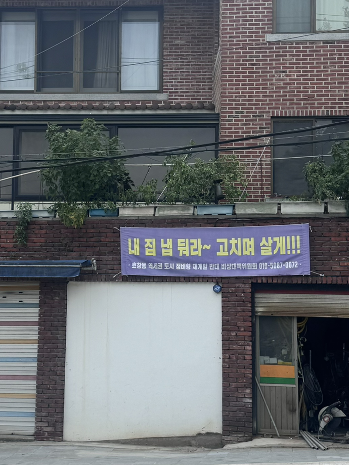 재개발을 반대하는 현수막이 보였다