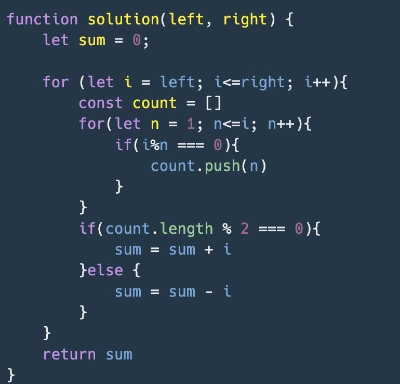 코딩테스트 연습 > 월간 코드 챌린지 시즌2 > 약수의 개수와 덧샘