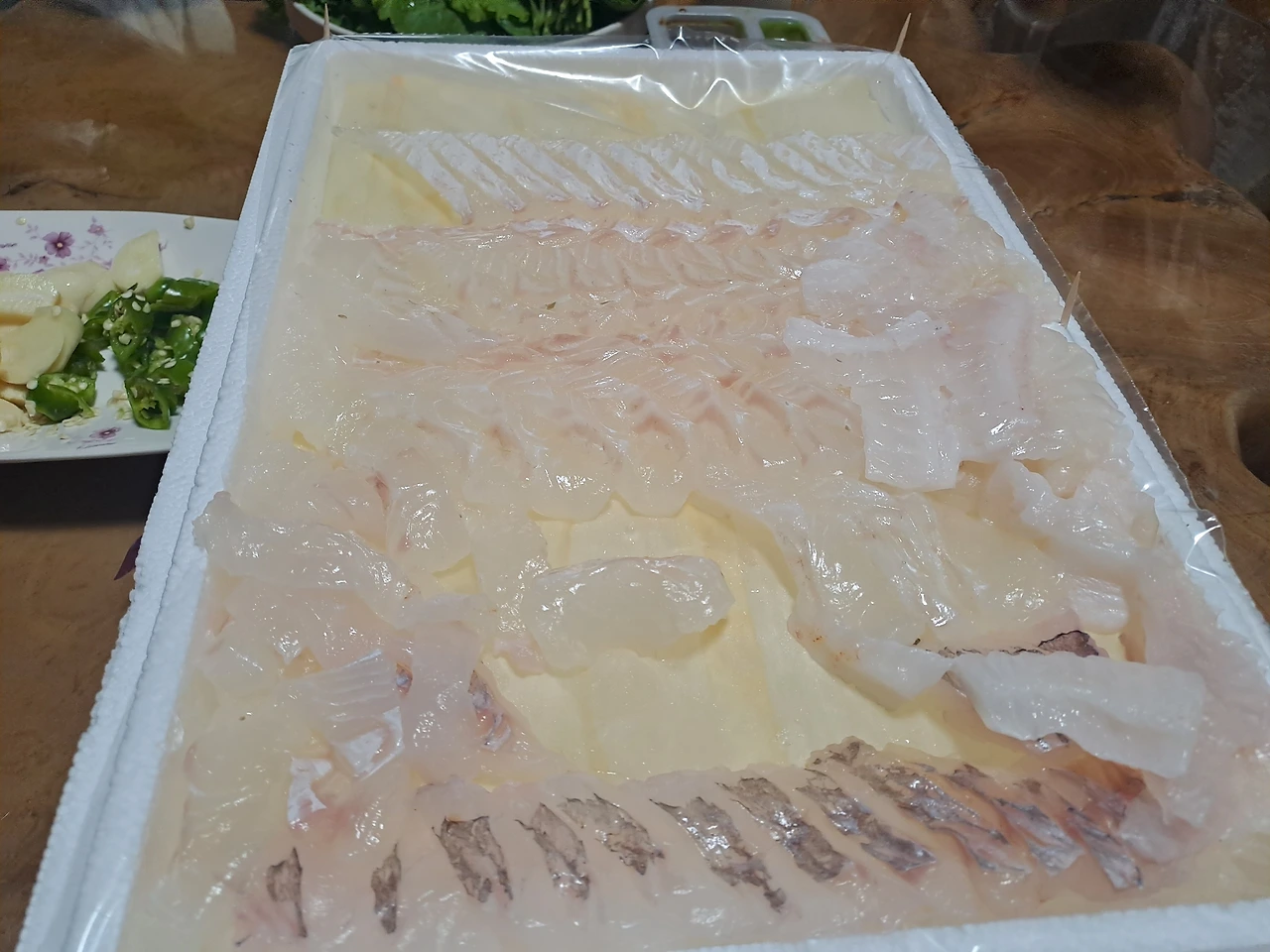 항상 가는 가게에서 꽃게랑 회를 샀다.