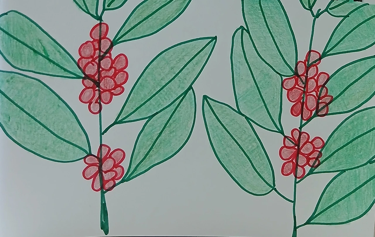 그때 예쁘다고 볼 때마다 칭찬했던 '먼나무' 가지가 '툭' 하고 신발 등에 떨어졌다. 몇 걸음을 걸어도 따라오던 가지를 區가 바뀌는 신호등 앞에서 '오늘은 이걸 그려야지.' 하며 주머니에 넣었는데, 집에 오니 없다. 경사로를 돌 때 손에 닿던 바람에 놀라 주머니에 손을 넣다가 빠졌나? 생각을 더듬어 그린 먼나무는, 부산의 거리 곳곳에서 볼 수 있다. 10여 년 전인가. 처음 먼나무를 본 것은 버스를 타고 가면서였다. 마침 돌담 앞에 서 있던 나무는, 짙은 초록에 듬성듬성 빨간 열매가 달려서 예뻤다. 먼나무는 말 그대로 '멀리서 봐야 더 예쁘다.'라고 하지만, 나무 자체도 참 멋지다.