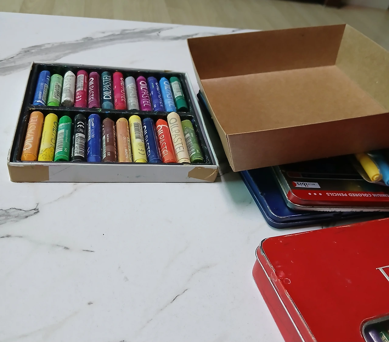 그림도구가 늘어났는데, 어떤 건 열어 보고 바로 서랍에 든 것도 있고, 상자에 든 것도 있다.