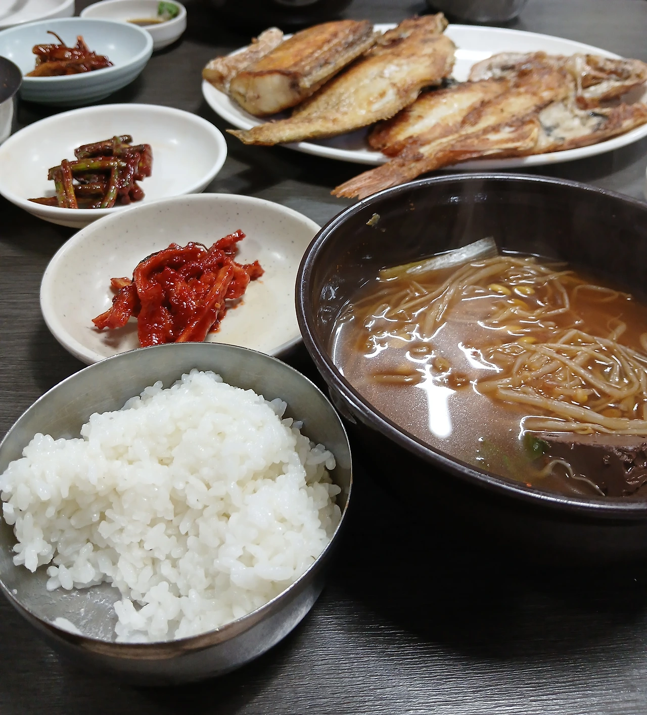 남편과 모처럼 아침에 용두산공원에 갔다가 자갈치 시장에서 선지국밥을 먹자고 했다. 딸이 설날에 왔을 때 생선구이를 먹은 집은, 국으로 선짓국을 주었다. 그 생각이 나서 생선구이를 먹으러 갔는데,