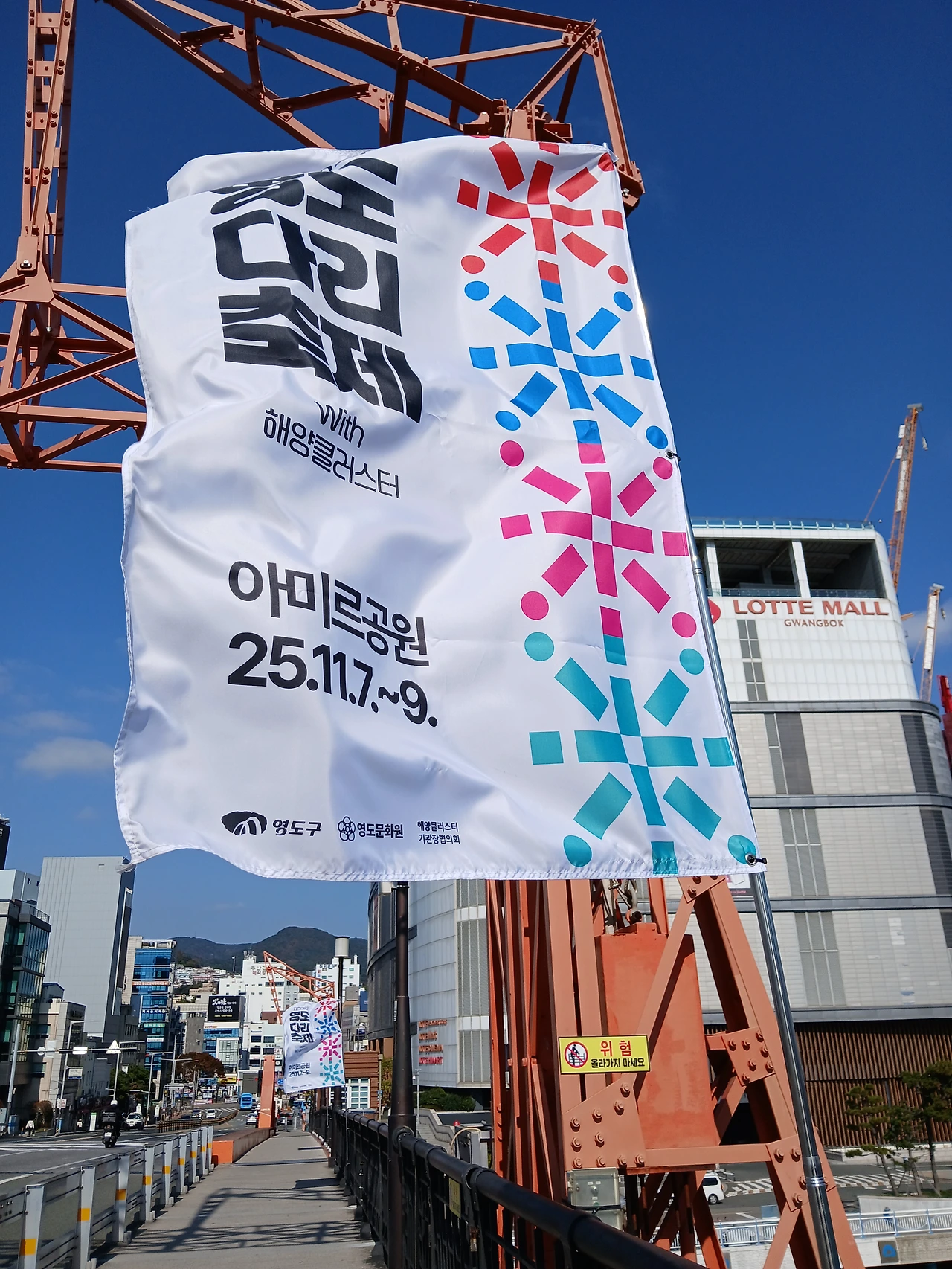 자갈치 바다는 덤덤한데, 영도 아미르 공원에서 '영도다리축제'를 알리는 깃발이 나부낀다. 다리를 지나는 사람들은 바람에 날리는 옷자락을 기분좋게 펄렁이며, 느릿느릿 걷는다.