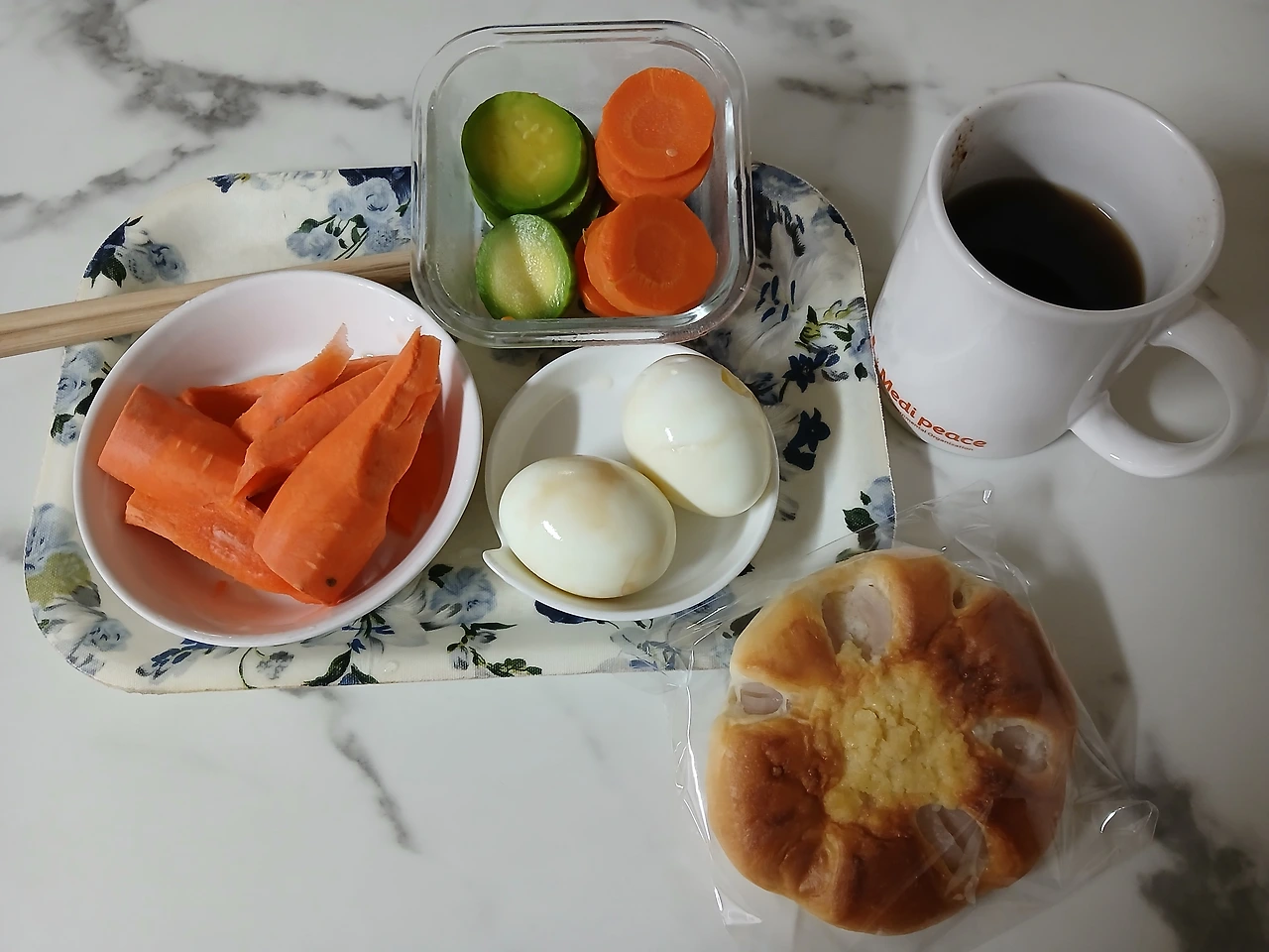 점심은 오늘의 커피와 베이글 하나.