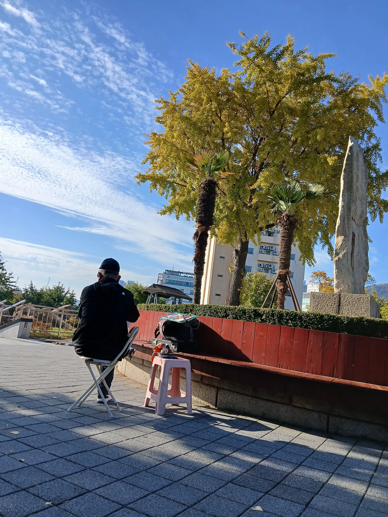 아침 햇살을 받고 앉아계신 모습이 짠했다.