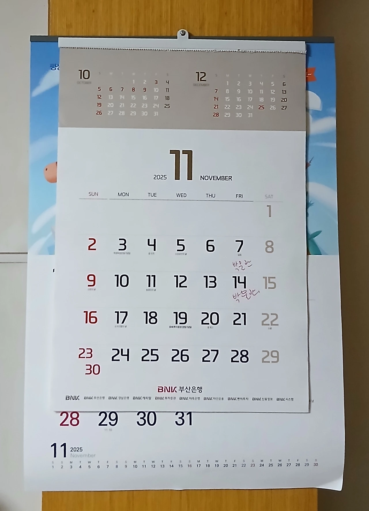 며칠 전에 2026년 달력과 가계부를 받아왔다.