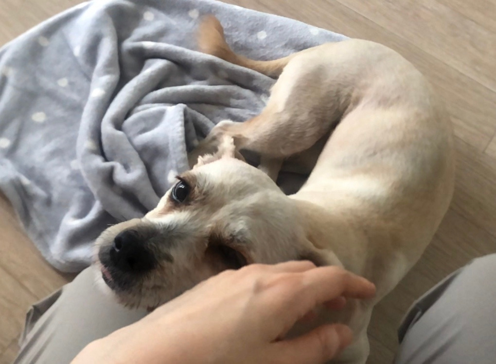 ( 이 아이는 보호소 출신. 기간 내에 입양이 안되면 안락사 예정이었던 아이를 데려왔다고 한다. 어려서부터 눈치를 보고 자랐던 걸까. 뭔가 조금 주눅들어 있는 것 같다 )