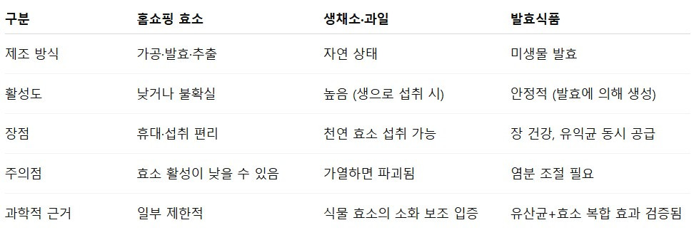 **효소 그 자체보다는 ‘발효물질’**이 주요 성분인 경우가 많습니다.