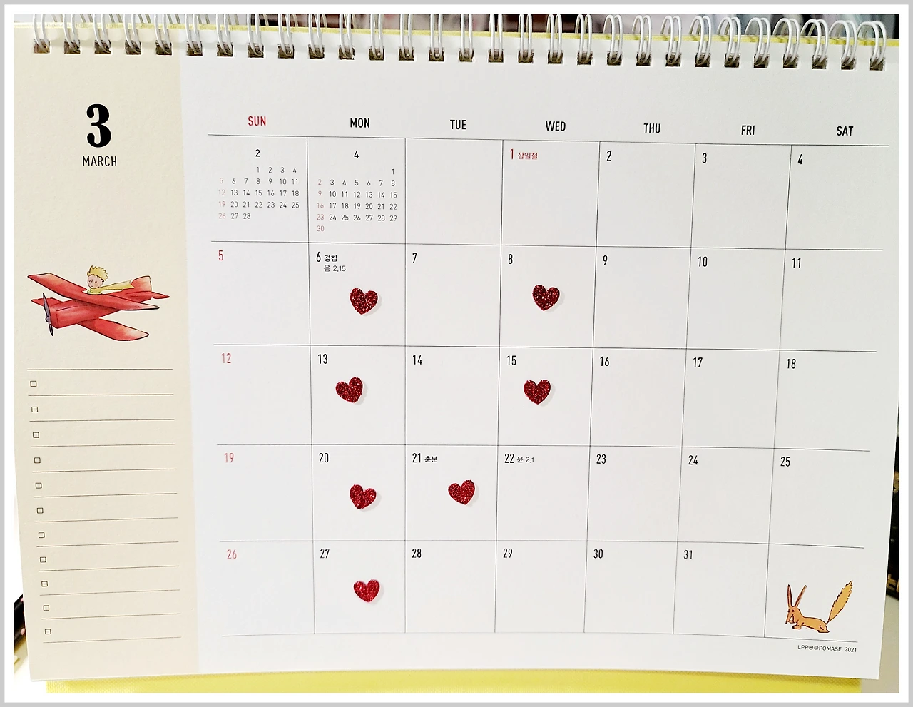 그리고 3월, 관장과의 레슨이 시작됐다. 봄날의 설렘처럼 레슨이 끝나면 빨강 하트 스티커를 달력에 붙인다. 그리고 이해가 되건 안되건 그날의 말들을 기록으로 남긴다. ‘이해’라는 게 참 중요하다고 생각하던 때가 있었다. 지금은 아니다. 뇌과학자 박문호 박사는 이해하기 어려울 땐 일단 이해를 보류하고 근육을 먼저 사용하라고 한다. 그러면 나중에 근육이 알아버리고 이해는 오게 된다고. 이해는 하는 것이 아니고, 오는 것이라고. 그 말을 믿어보기로 했다. 이해가 나에게 오는 그날까지. 반복은 사랑이고, 반복은 힘이 세고, 반복은 위대하다.