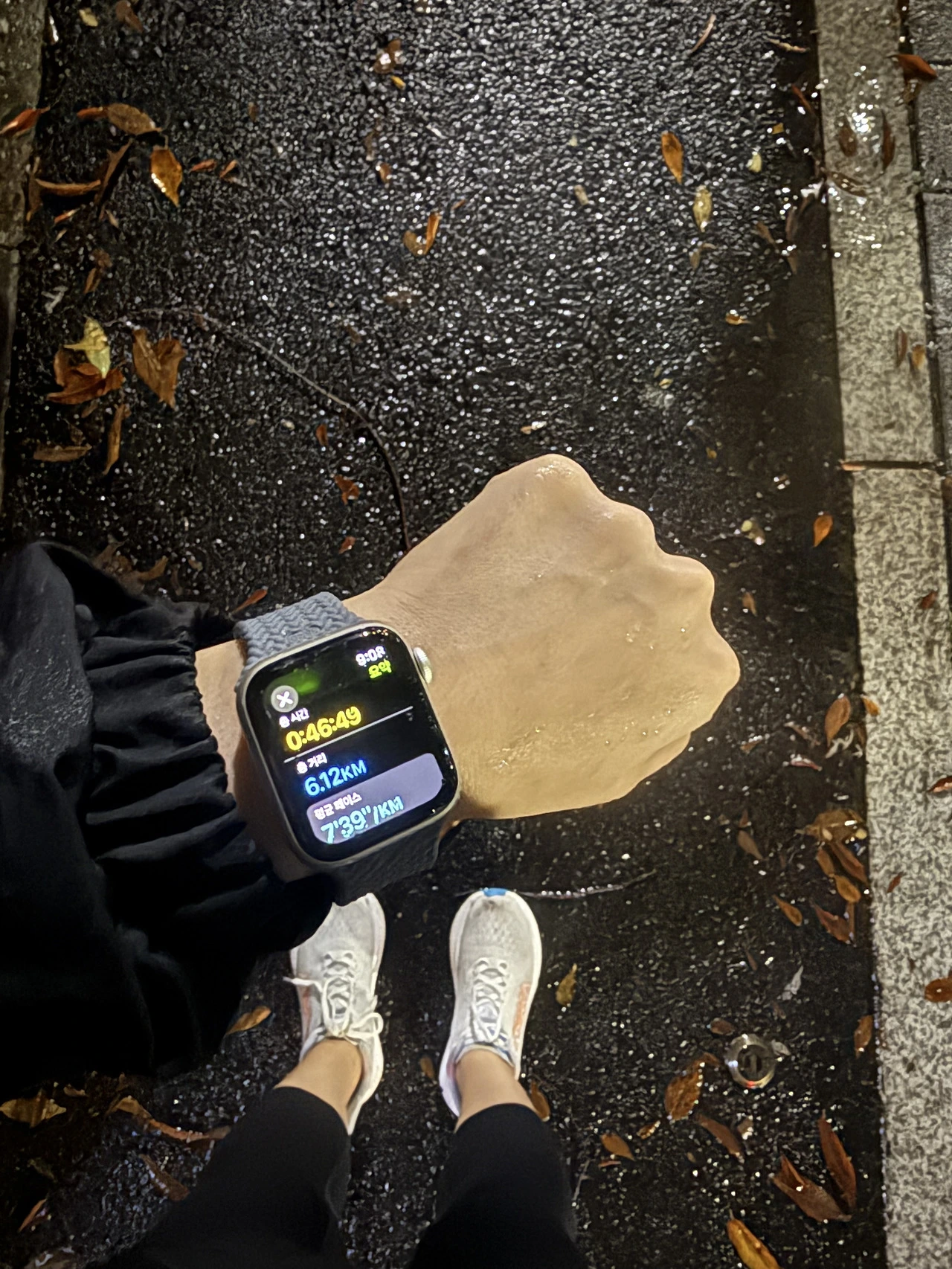 물 웅덩이에 발을 툭툭 넣으며, 아이가 첨벙첨벙하는 것처럼의 시원함을 느끼며 미소가 지어졌다. 해방감이랄까. 나를 꼭 잡고 있던 것들에 대한 해방감. 어쩔 수 없는 상황이라고는 하지만 나에게 주어진 역할, 나를 옥죄고 있던 나를 놔주던 순간이었다. 그리고 계획보다 2km를 더 뛰었고 난 오롯이 내 발에 차이는 빗물과 내 모자에 떨어지는 빗줄기에 집중했다.