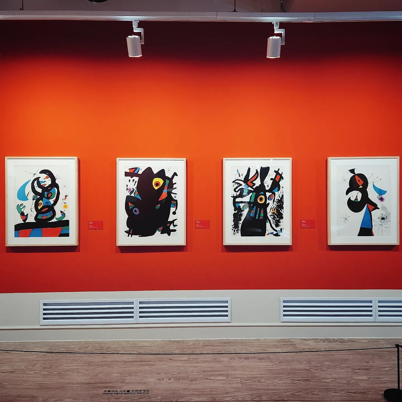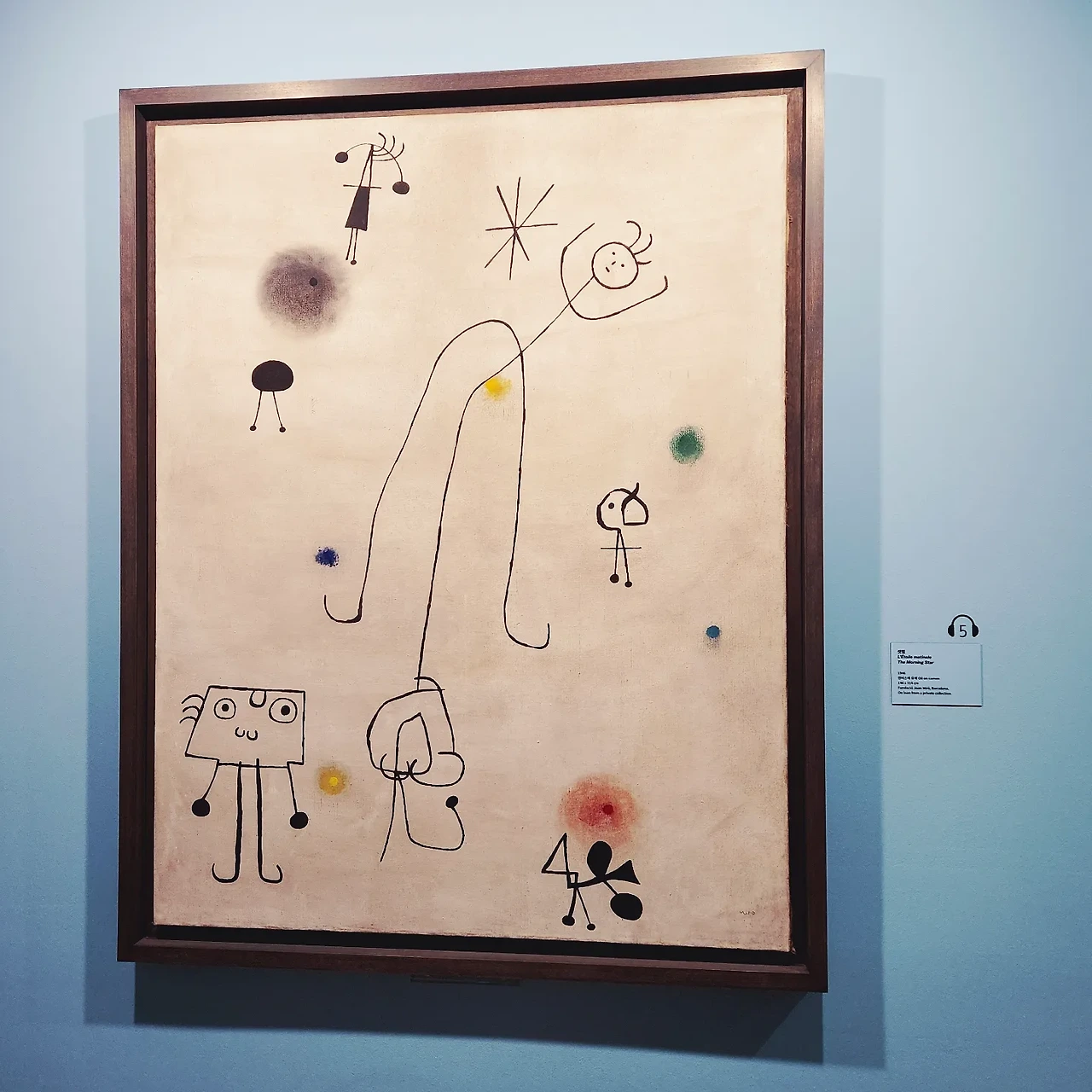 '우리가 접하는 기호와 상징은 어디에서 기원한 것일까? 그리고 위대한 예술가의 추상화가 우리의 일상에 얼마나 영향을 미쳤을까?' 첫 번째 섹션의 첫 그림을 보면서, 마지막 네 번째 섹션의 마지막 그림을 보면서, 마치 수미상관으로 관통하는 궁금증과 통찰이었다. 각각의 물음표는 전시 관람을 막 시작한 백지장인 머리로 내가 떠올린, 호안 미로의 그림과 역사에 통달한 도슨트가 관객들에게 던진 질문이다. 첫 그림을 감상할 때 발견한 *이 별을, m이 별자리를 의미하는 것 같은데 호안 미로가 m을 먼저 별자리 상징으로 쓴 것인지, 별자리의 상징이 먼저 쓰이고 나중에 호안 미로가 그림에 쓴 건지 궁금했다. 그리고 도슨트가 마지막 그림을 설명하며 kb국민은행의 k 심볼에 입힌 *을 보여주며 추상화가 일상에 미친 영향에 대해 생각해보라는 문장이 기가 막히게 수미가 상응한 것이다. 쪼렙의 순수한 의문점과 만렙 전문가가 던지는 질문의 맥락이 이어질 수 있구나! 설레고 두근거리며 흥분되는 경험이었다. 막연히 어렵게 느껴지던 추상화가 친근하고 정겨우면서도 알쏭달쏭하고 쉽게 채워지지 않는 호기심을 불러일으키는 재미있는 분야라고 느껴졌다.