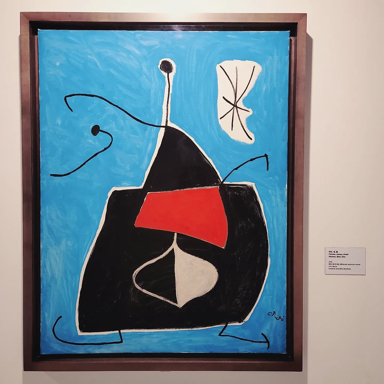 제목부터 알 수 있듯이 호안 미로의 전시에서는 여인, 새, 별을 포함하여 해, 달, 별자리, 사다리 등의 모티프를 어떻게 본인만의 감성과 상상력, 창의성으로 작품에 녹였는지를 감상할 수 있었다. 네 파트의 전시 구성은 대략 시간 순을 따르는데, 그로 인해서 변화하는 화풍과 새롭고 도전적인 시도, 예술가적 창조에 대한 고찰을 감상할 수 있었다. 솔직히 첫 번째 섹션과 두 번째 섹션의 회화 작품을 감상할 때는 너무나도 단조롭게 축약된 형태로부터 감흥을 얻지 못했다. 심지어 마치 말년에 조현병을 얻었다고 알려진 루이스 웨인(Louis Wain)처럼 정신병을 가진 것은 아닌지 의심할 정도였다….