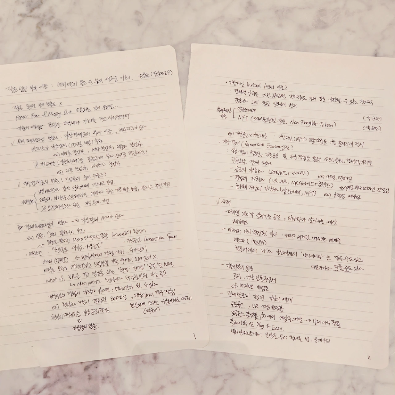 '기술의 이해'를 강조하며 시작한 강의는 새로운 기술의 등장으로 부의 패러다임이 변화하고 있다는 내용을 서술했다. 현실 세계의 비즈니스가 디지털 세상의 가상경제로 옮겨가고 있으며, 가상경제로의 전환을 준비하는 기업들의 종류도 제시했다. 가상경제의 개념에 앞서 가상공간이 나오는데, 게임이나 VR, 메타버스 플랫폼 등 '현실로 여기는 가상공간'에서 '경험'하는 것들을 '메타버스'라고 일컫는다. 아직은 모두가 메타버스라고 느낄만한 기술이 구현되어 있지 않은 단계이므로, 적극적으로 게임이나 메타버스 플랫폼에서 가상공간을 경험하는 세대와 그렇지 않은 사람들 간 메타버스의 이해도와 온도차가 크다고도 언급했다.