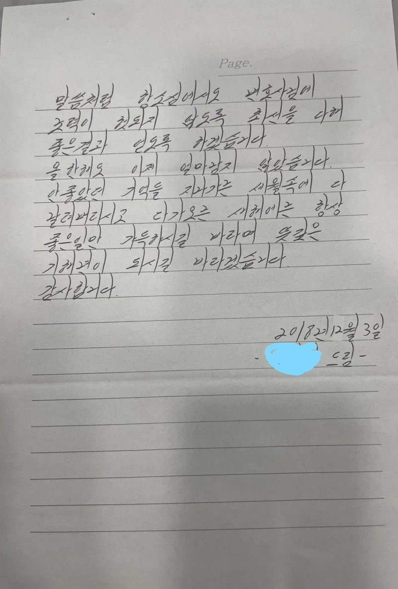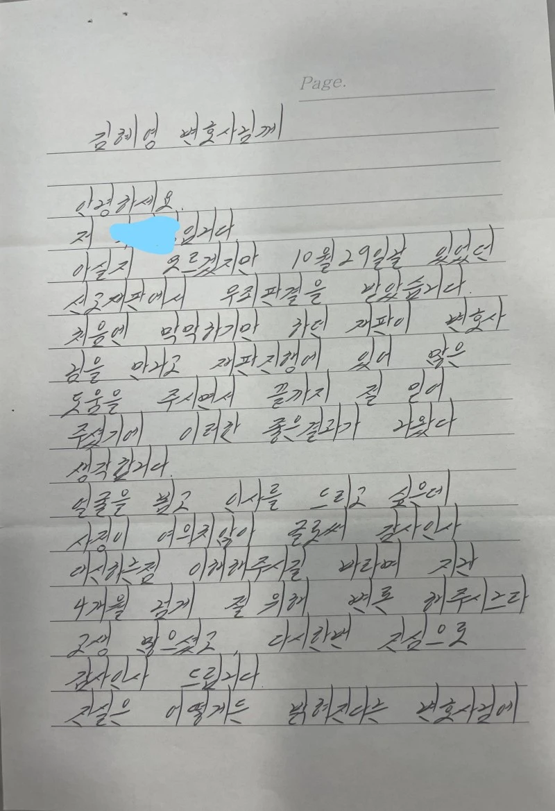 피고인은 무죄 선고를 받고 필자에게 감사 편지를 보냈다.