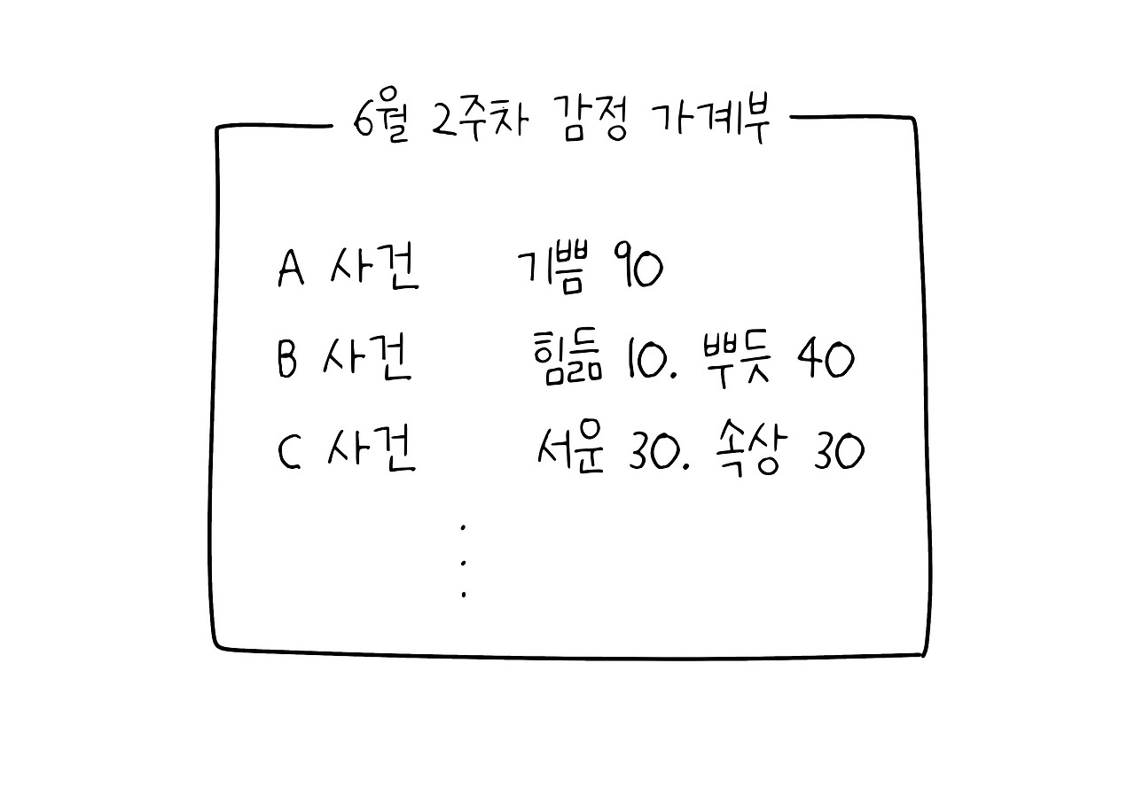 마치 감정 가계부를 쓰는 느낌이다. 이 과정이 꽤나 치료에 도움이 된다. 매우 큰일이 일어났다고 느껴서 이번에 병원에 가면 꼭 말씀드려야겠다고 생각하다가도, 막상 병원에 갈 때 즘 되면 이미 마음의 안정을 찾은 상태인 경우도 많다. 별 일 아니라고 여기고 지나갔는데 돌이켜보니 나의 감정 변화에 은근 영향을 주었음을 그제야 깨닫게 되는 경우도 있다. 길을 잃고 떠돌던 감정들에 하나하나 이름을 붙여주는 느낌이 든다. 쉽게 말하면 내 감정을 잘 살피는 습관이 생긴다.