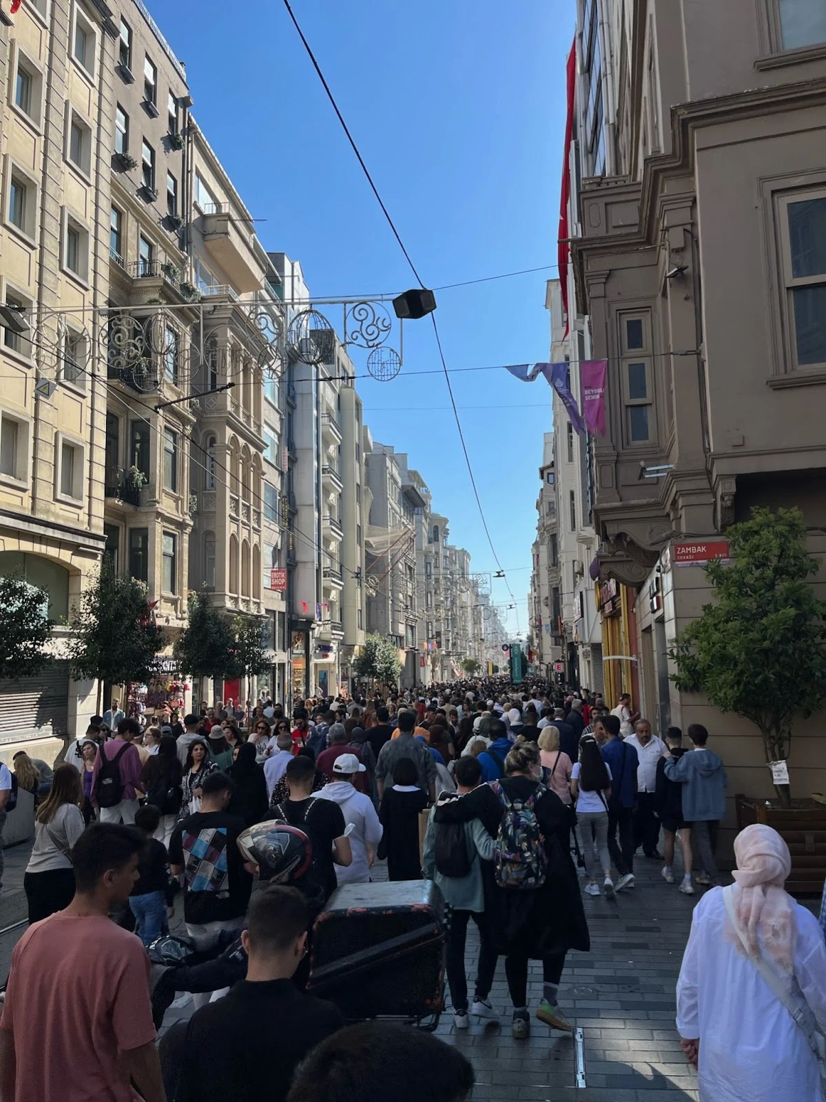 토요일이라 그런지 탁심광장도 많은 인파로 축제 분위기였다. 저렴한 스타벅스에서 잠시 쉬고 화장실을 해결한 후 산책에 나섰다. 탁심광장에서 갈라타까지 이어지는 길이 이스탄불에서는 가장 인파가 많은 길이라고 한다. 매 주말 수십만 명이 지나간다고 하는데 과연 그럴만한 인파다. 차가 다니지 않는 보행자 전용 큰길이 있다. 좌우로 대형 상점과 식당이 줄지어 있는 것이 상해나 베이징의 중심가가 떠올랐다. 사실 반대로 여길 벤치 마크해서 상해나 베이징의 그 거리를 만들었겠지만 말이다. 인파 사이로 지나다니는 빨간 트램이 귀엽다. 아마 관광용으로 운영하는 것 같은데 빠르게 둘러보려면 한번 타보는 것도 좋겠다는 생각을 했다.