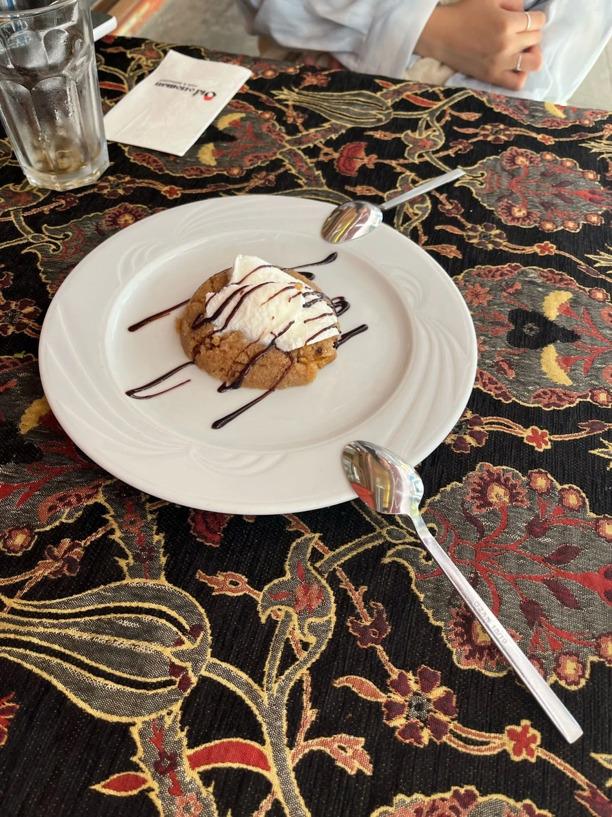 아야 소피아를 나오니 벌써 배가 고픈 시간이다. 예전에 한국인 여행 블로그에서 찾아둔 Buhara Kebab House라는 식당이 가깝길래 그쪽으로 향했다. 여기도 흰 빵을 궈서 내놓는 것을 보니 괜찮은 식당 같다. 여기 흰 빵은 구멍을 내서 부풀지 않게 구웠다. 아다나 케밥과 함께 주키치라는 호박전 비슷한 음식을 시켰는데, 요거트 소스와 함께 간장도 같이 나왔다. 간장을 찍어 먹으니 호박전이라는 느낌밖에 들지 않는다. 나중에 터키인인 J 씨 친구에게 간장이 보통 나오냐고 물어봤는데 잘 안 먹는 소스라고 한다. 동아시아 관광객을 위해서 주는 것 같다고 말한다. 이곳에서는 디저트로 갈아놓은 견과류를 꿀에 재우고, 그 위에 아이스크림을 얹어서 줬는데 맛있게 먹었다.