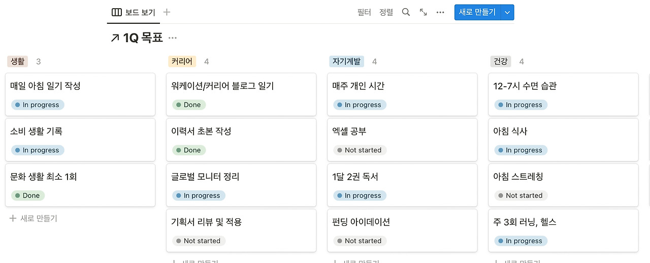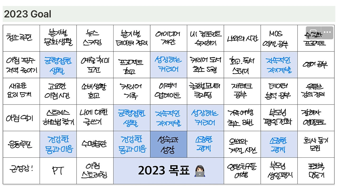 회고 모임을 진행하면서는 회고에서 나아가 연도 별, 분기 별 계획을 세우고 있는데요, 크게는 한해 목표를 만다라트 계획표에 따라 잘게 나누고, 이를 기반으로 각 주제별 분기 목표를 세웁니다. 이루고 싶은 목표를 실행 가능한 단위로 쪼개서 실제로 그것을 이루기 위해 당장 이번주, 오늘 해야 할 것을 파악하고 노력할 수 있다는 점이 좋습니다. 지금 당장 필요하지 않은 것 같다고 미루다 보면 결국 똑같이 시간을 보내게 되는데요, 분기별로 목표를 두니 ‘이번 분기 안에는 한 번이라도 하자’라는 마음이 생기게 되었죠. 그 마음이 모여서 결국 큰 목표까지 도달하게 만드는 게 아닐까요?