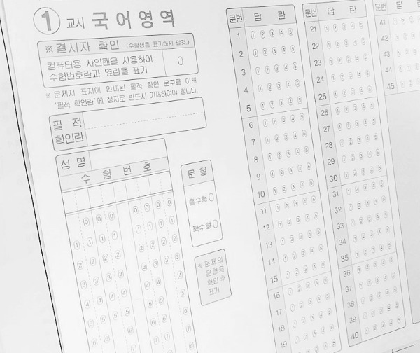 그 와중에 3점짜리 문항은 끝까지 헷갈렸다. 최종 선택은 1번이었다. 그런 다음 답 개수 법칙으로 찍으려던 문제의 답을 마킹했다. 이로써 45개의 칸을 모두 채우고 한숨 돌릴 타이밍에 종료령이 울렸다. 지독한 80분이 끝난 것이다. 하지만 아직도 네 교시가 남아 있었고, 나는 이 모두를 버텨내야 했다.
