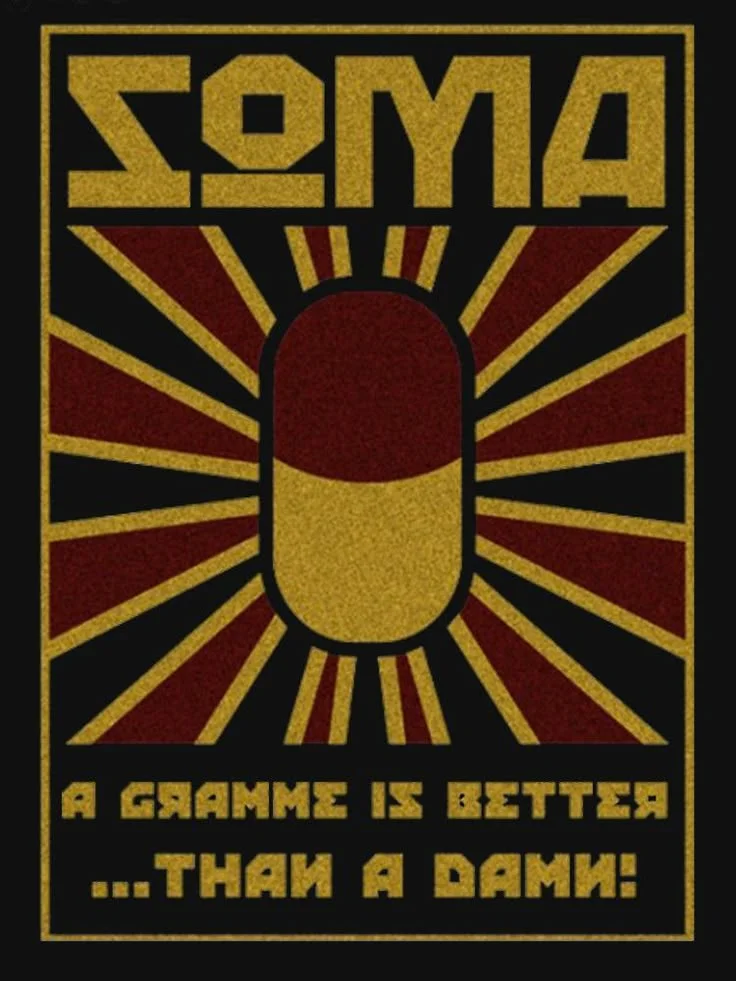 멋진 신세계의 정부는 소마를 시민들에게 무상으로 배급하며 오히려 소마를 많이 이용하길 장려합니다.