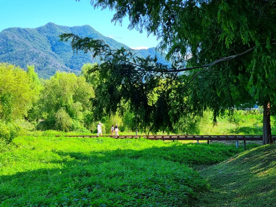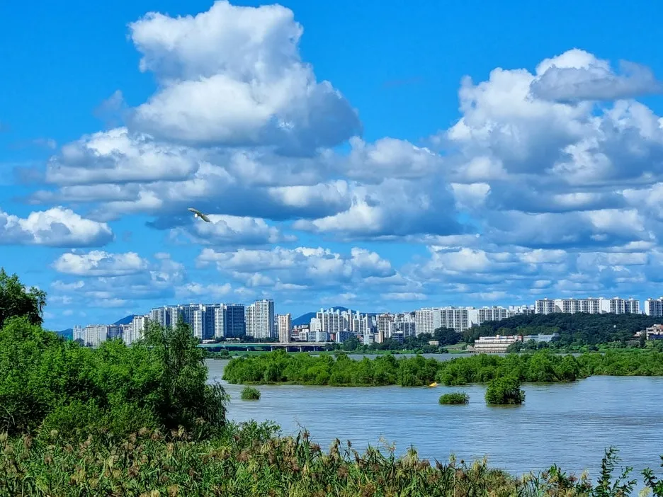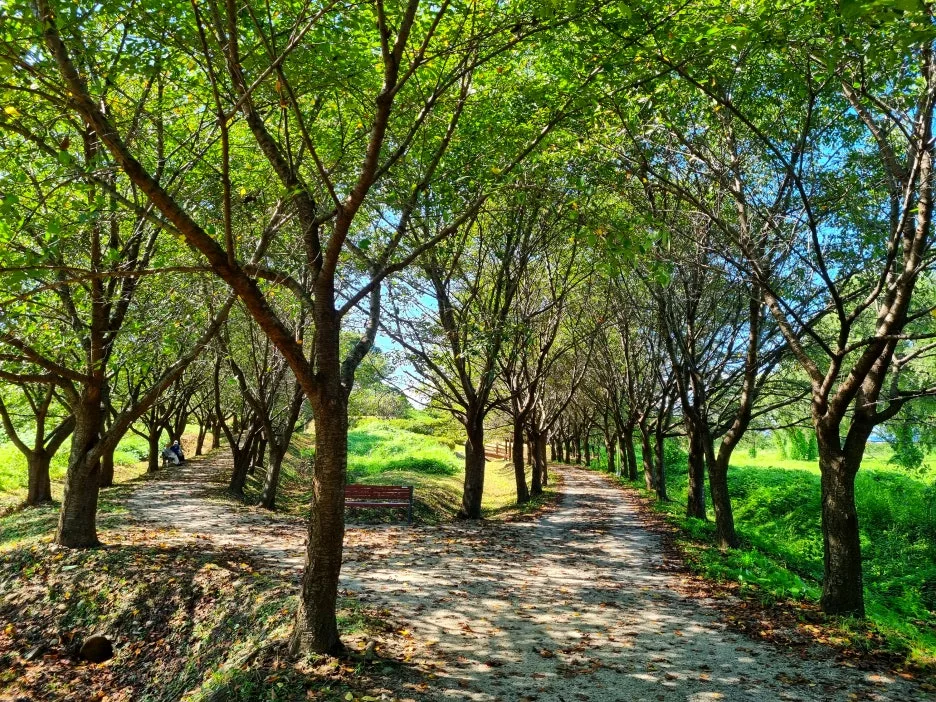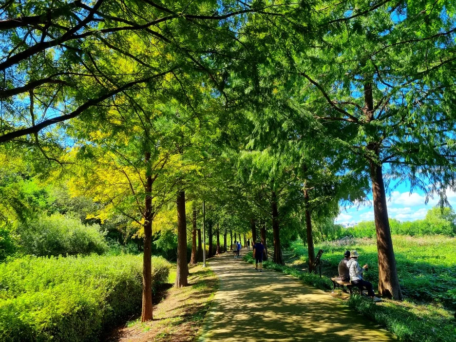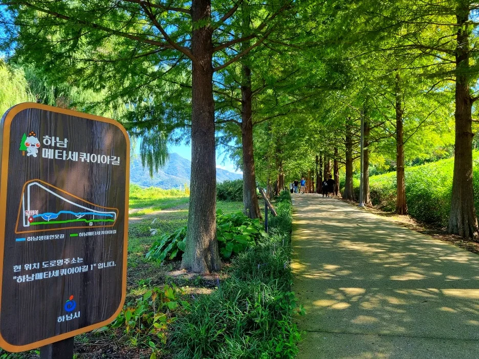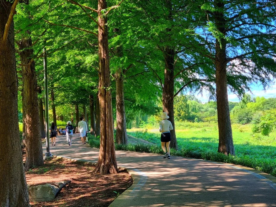오후에는 하남의 한강 둔치인 당정(堂亭)뜰 일대를 걸었다. 당정섬을 출발 팔당대교까지 이어지는 메타세쿼이아 숲길 1.2km, 되돌아오는 코스는 벚나무와 수양버들이 도열한 숲길 1.8km다. 강변이라 단순할 듯하지만 길의 표정은 의외로 다채롭다. 광활한 억새 · 갈대밭 사잇길, 작은 연못을 에두르는 데크길, 들꽃 군락지, 반나절만이라도 몸과 맘을 맡기고 싶은 아늑하고 시원한 쉼터, 특히 이곳의 자랑거리인 수직으로 곱게 뻗은 1.2km의 메타세쿼이아와 낙우송 숲길은 기온과 공기와 분위기까지 상큼하게 확 바꿔준다. 따가운 햇살에 그대로 노출된 강변 산책로도 늘어진 수양버들이 실어 나르는 강바람이 쾌적하게 감겨들어 걸음걸음이 물 흐르듯 가벼웠다.