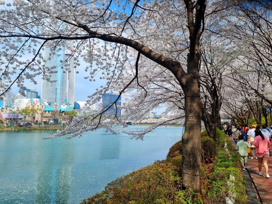 서울과 수도권에서 가장 인기 있는 벚꽃 명소는 역시 석촌호수가 아닐까. 초고층 빌딩과 어우러진 세련된 풍경과 뛰어난 접근성이 장점이다. 송리단을 비롯한 주변의 맛집과 멋집도 빼놓을 수 없다.