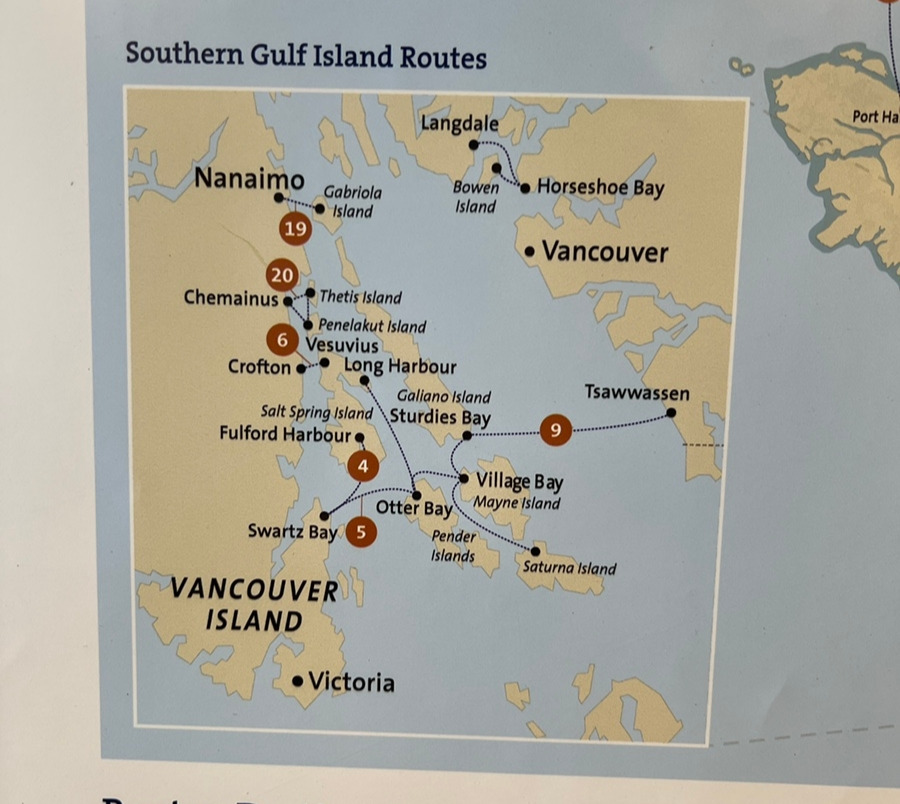밴쿠버 아일랜드에 가기 전에 여러 개의 섬들이 모여있는데 이곳을 Gulf Islands라고 불러요. 만약 빅토리아 도시에 가고 싶다면 Tsawwassen항구에서 출발해서 Gulf Islands를 지나야 만 갈 수 있는 거죠. 저의 최종 목적지는 Long Harbour 항구예요. 그곳이 바로 Salt Spring Island죠. 배를 타고 1시간 30분 정도 가면 도착해요. 직항으로 가는 것도 있고 주변 섬을 들려서 갈 수 있어요.